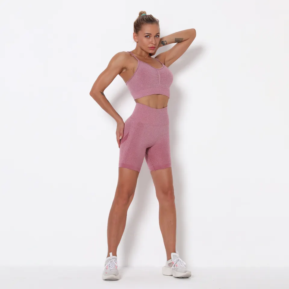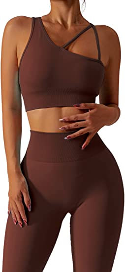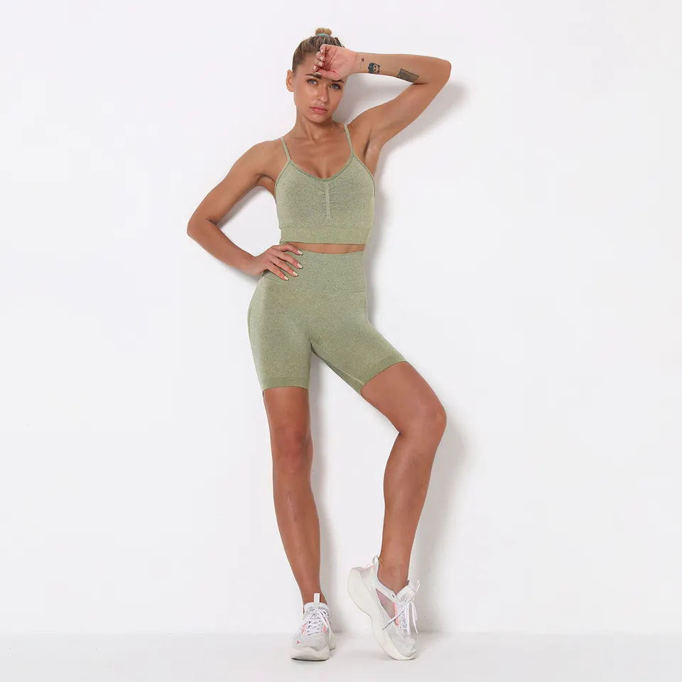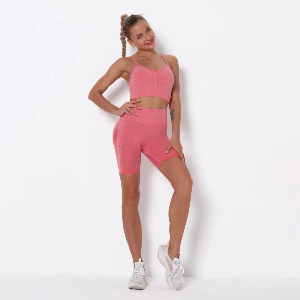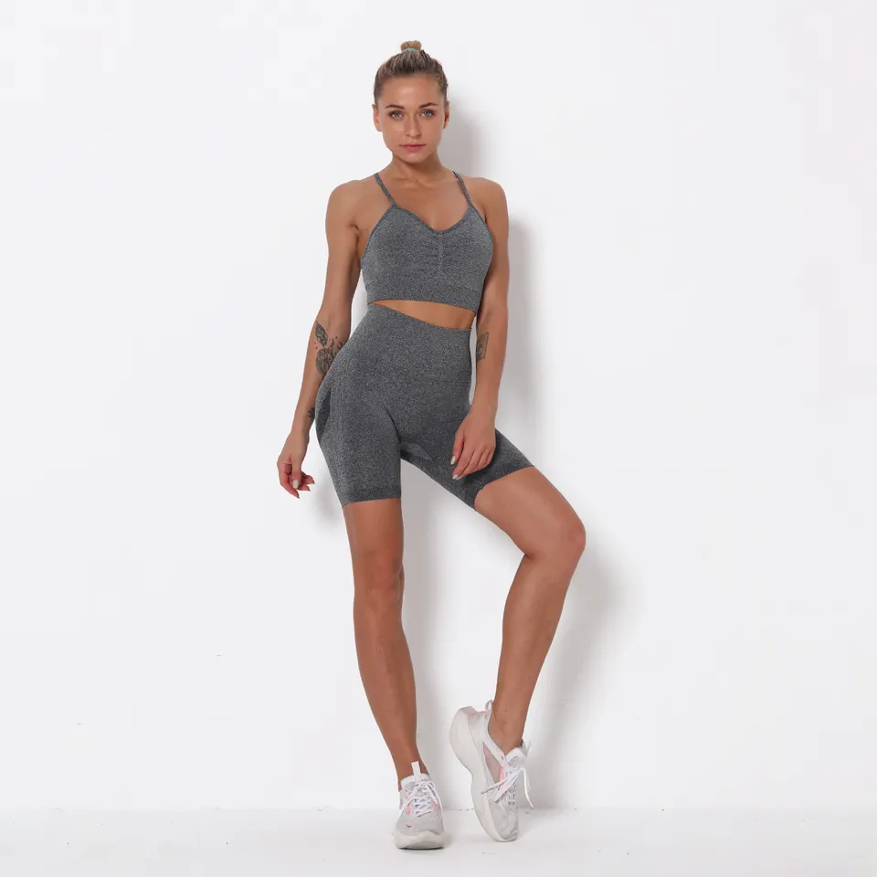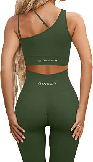 QINSEN Workout Sets for Women Seamless Sports Crop Tops High Waisted Leggings Two Piece Outfits