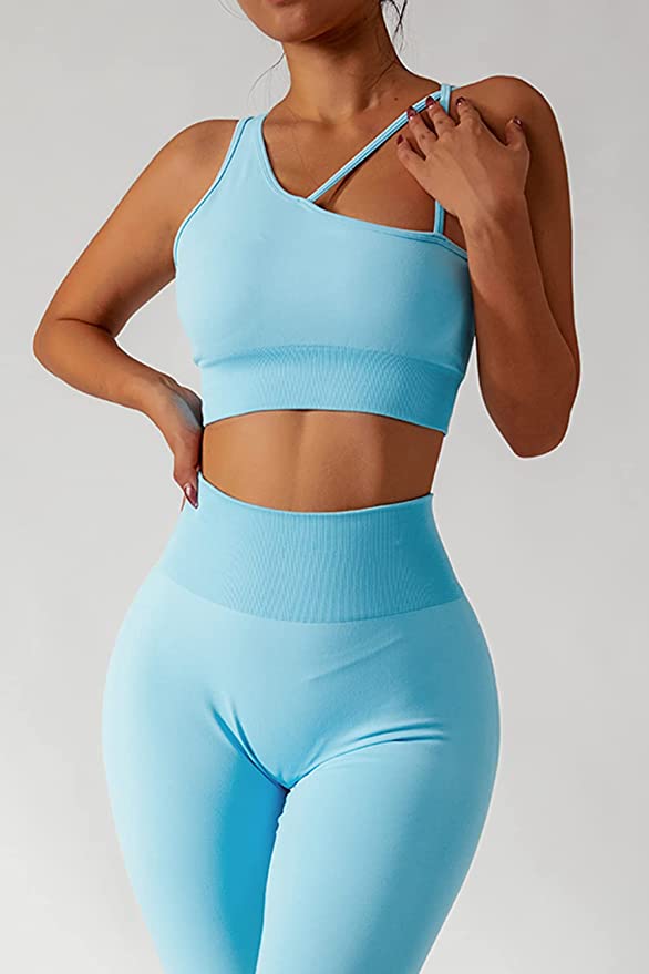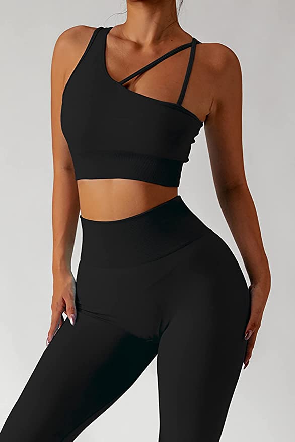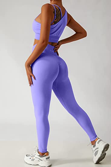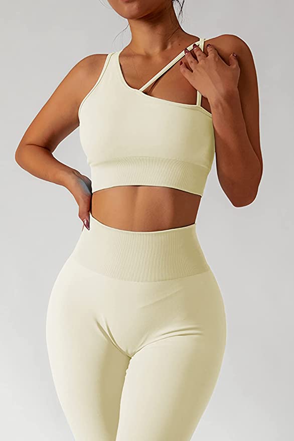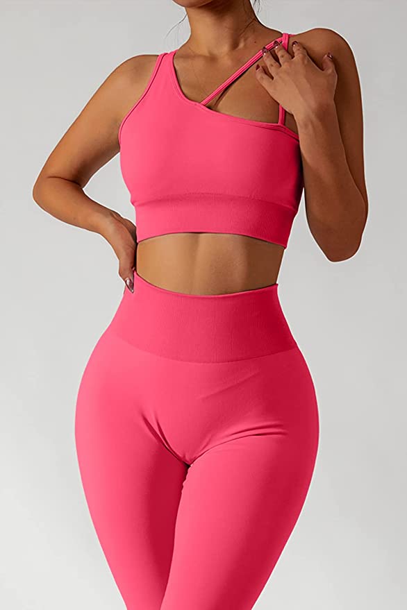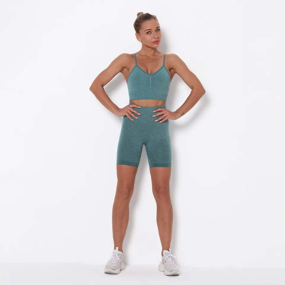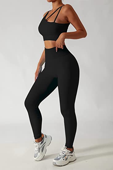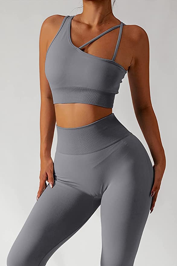 QINSEN Workout Sets for Women Seamless Sports Crop Tops High Waisted Leggings Two Piece Outfits