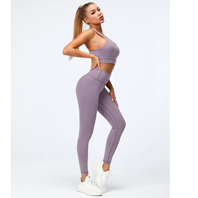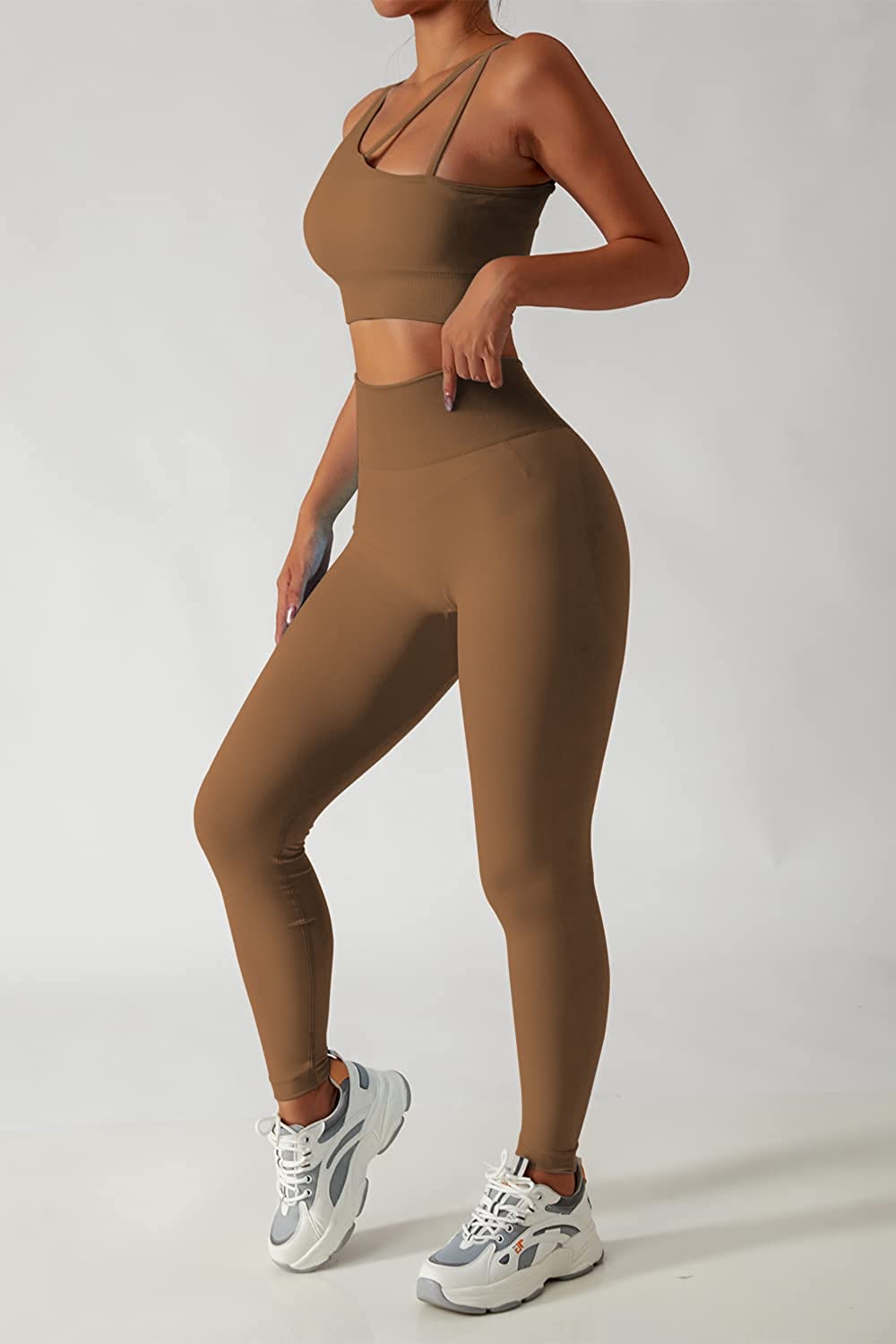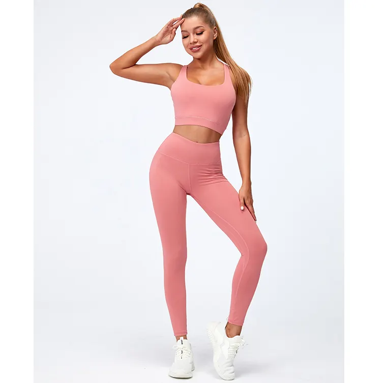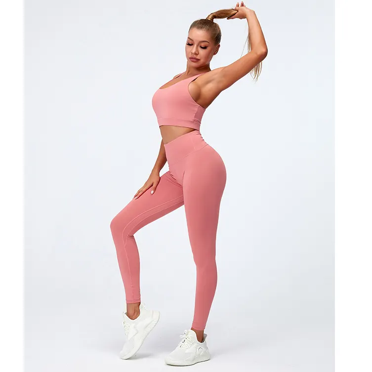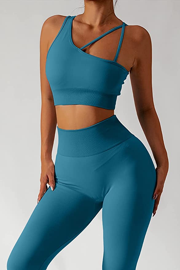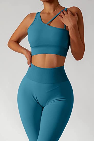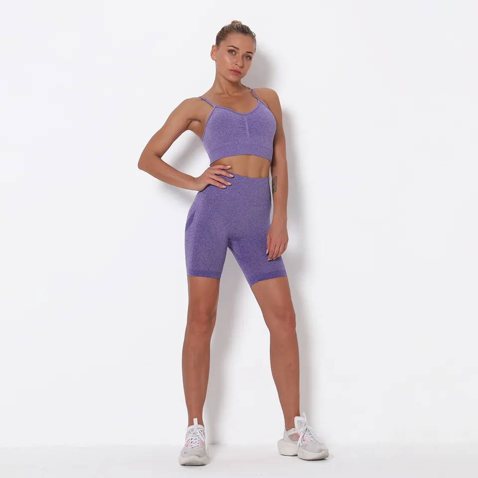 QINSEN Workout Sets for Women Seamless Sports Crop Tops High Waisted Leggings Two Piece Outfits