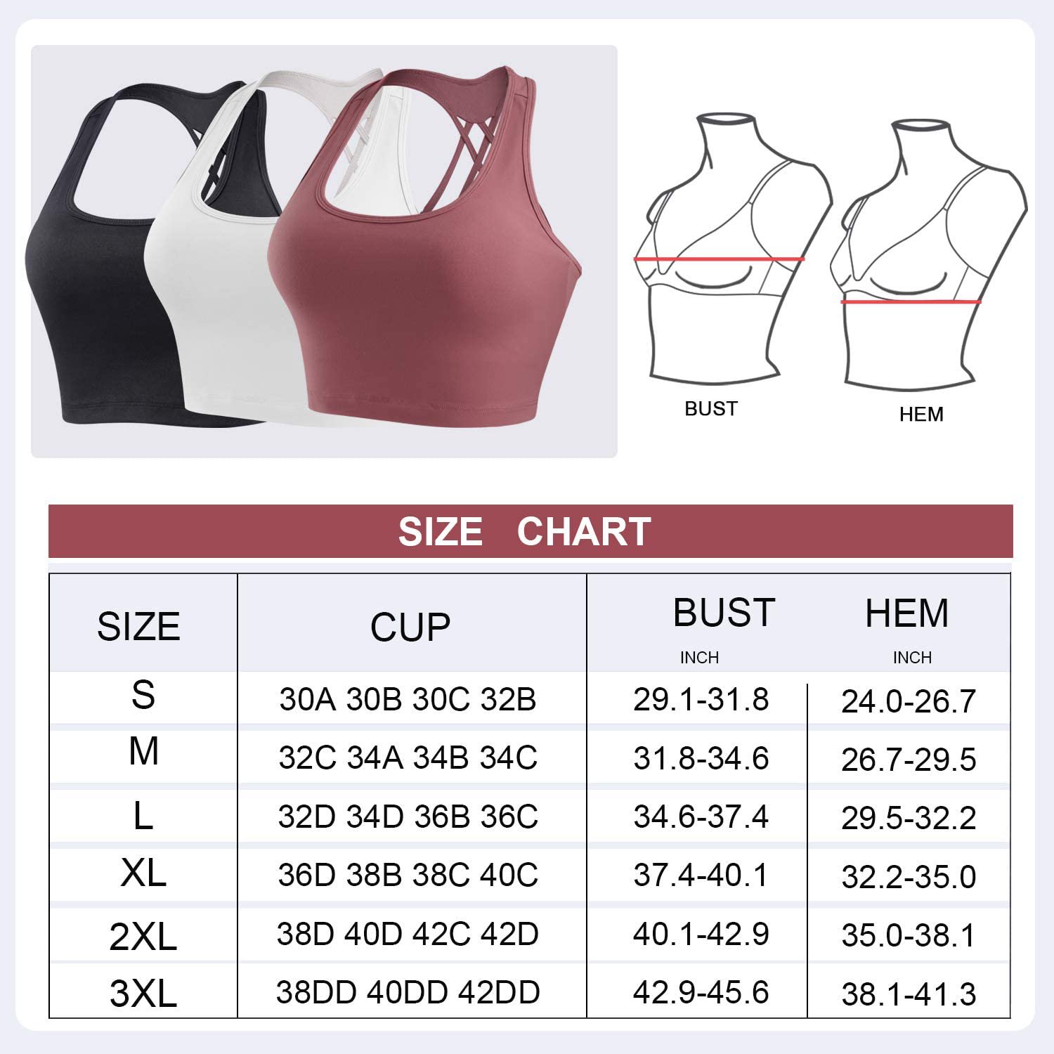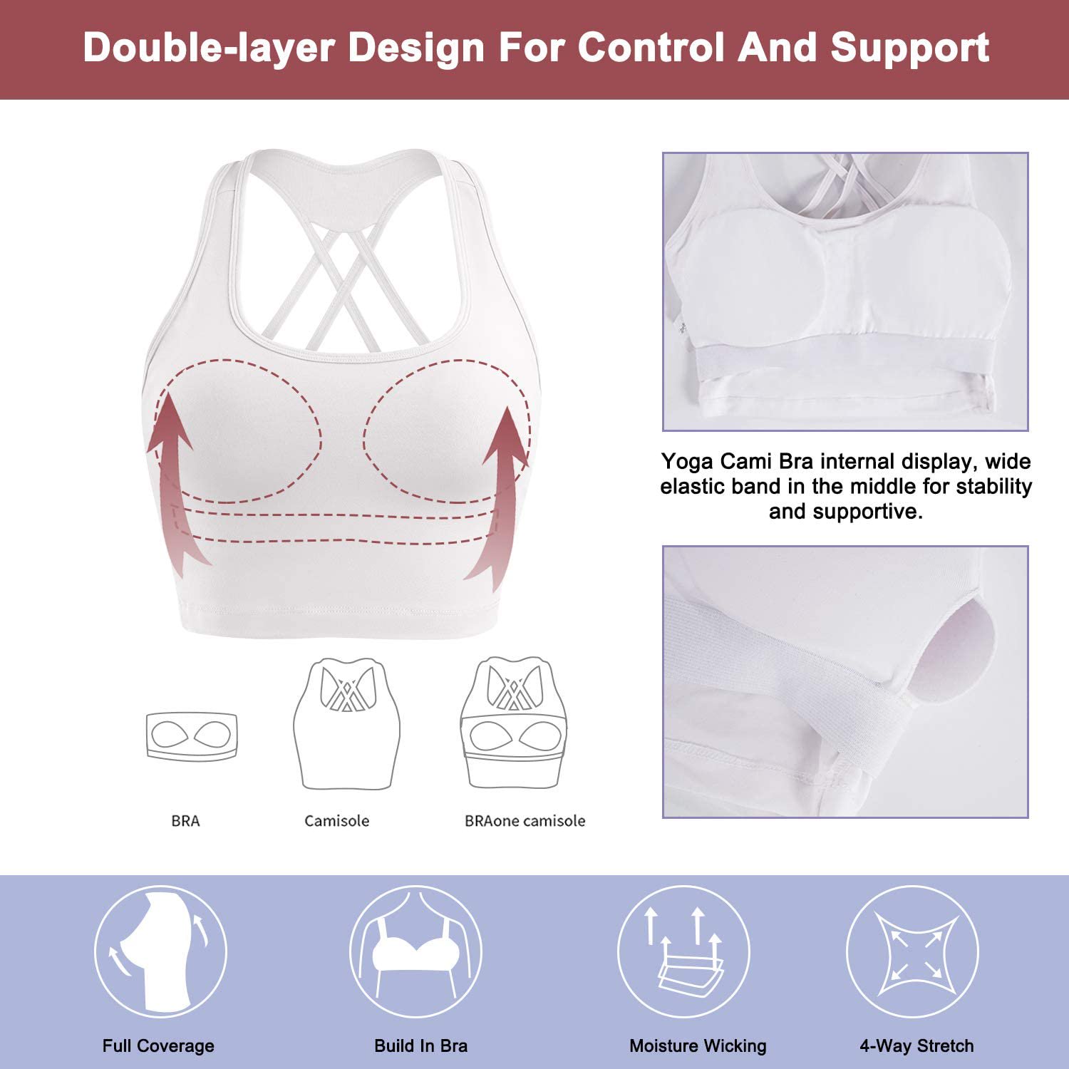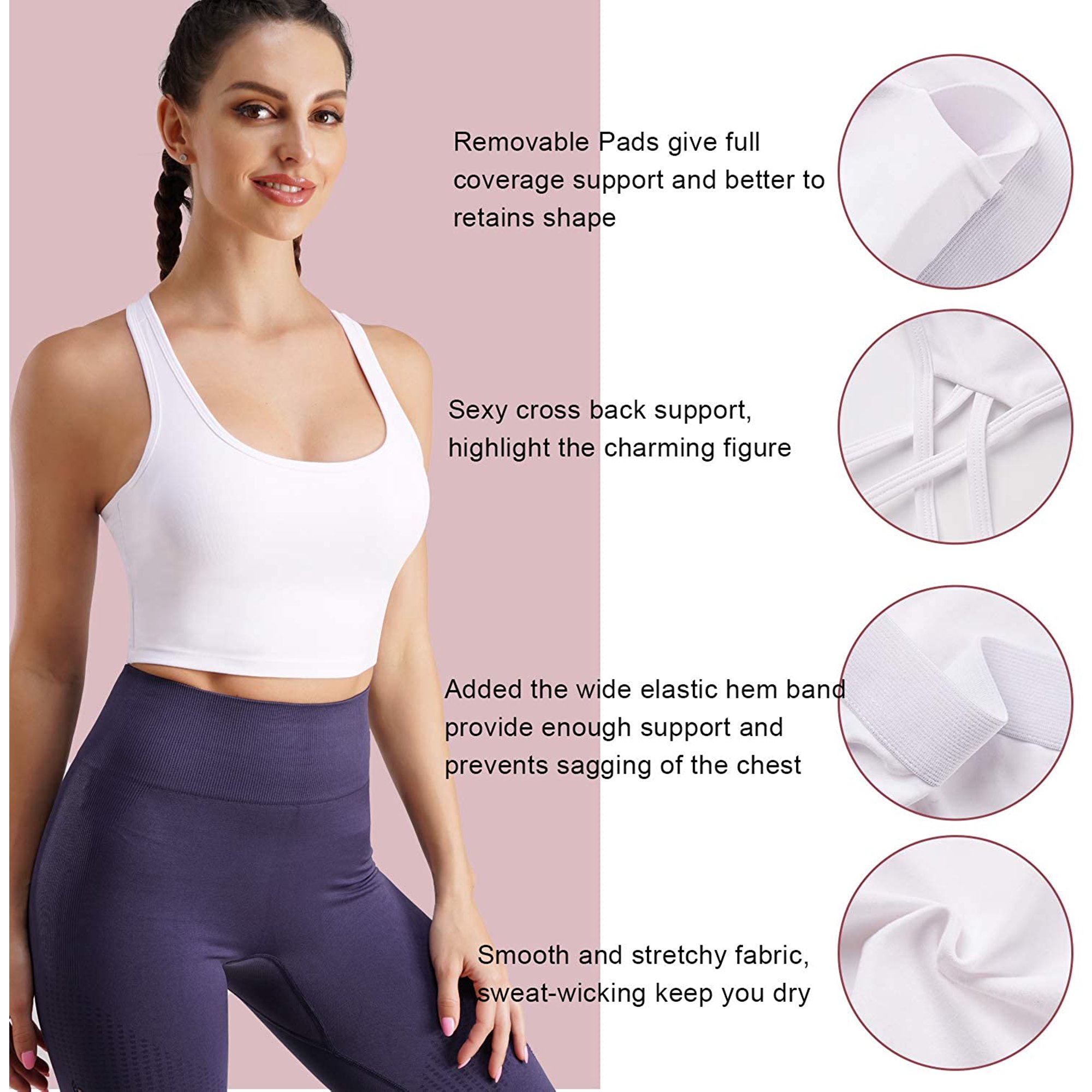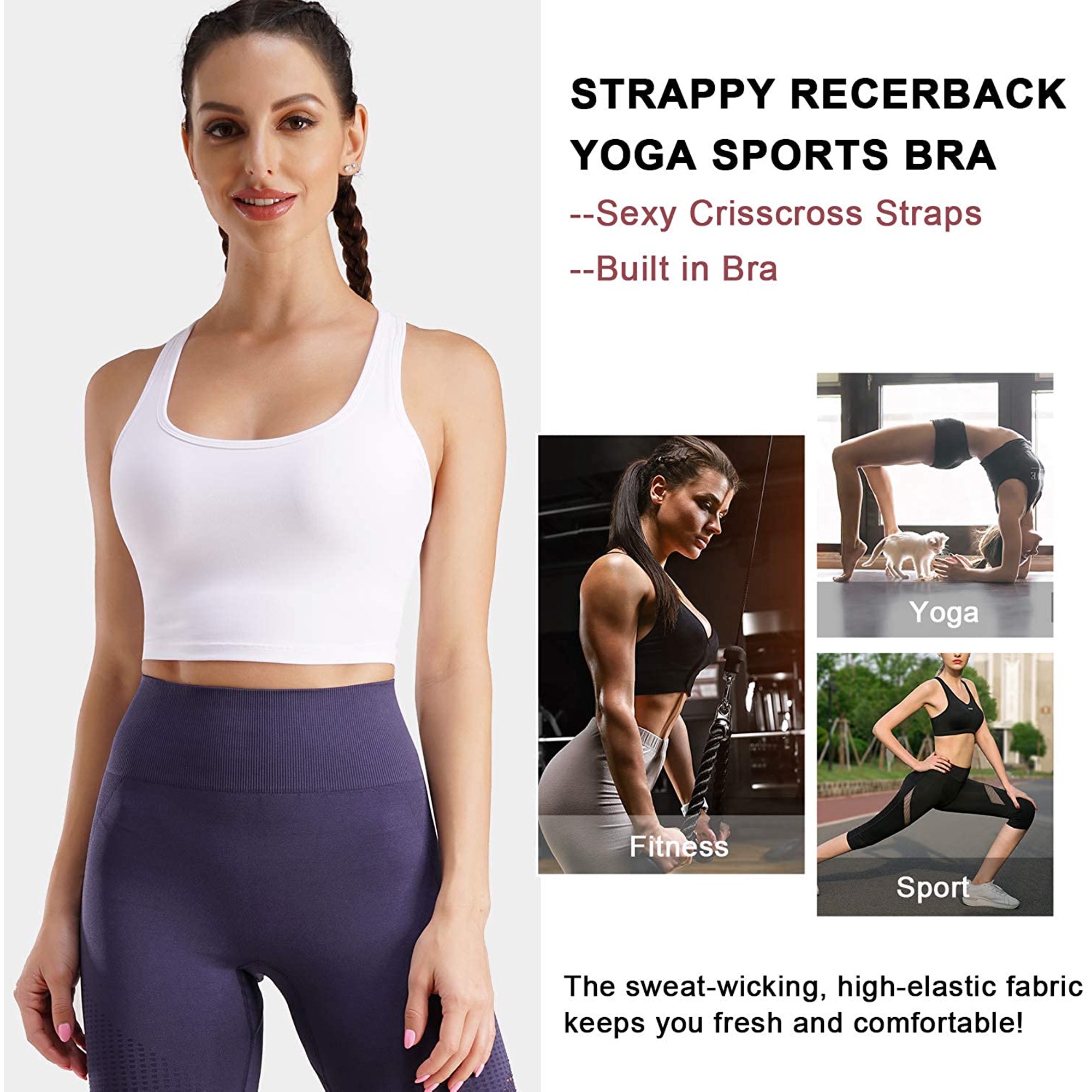 Nebility Women Sports Bra for Women Cross Back Longline Padded Yoga Crop Tops Medium Support Wirefree Workout