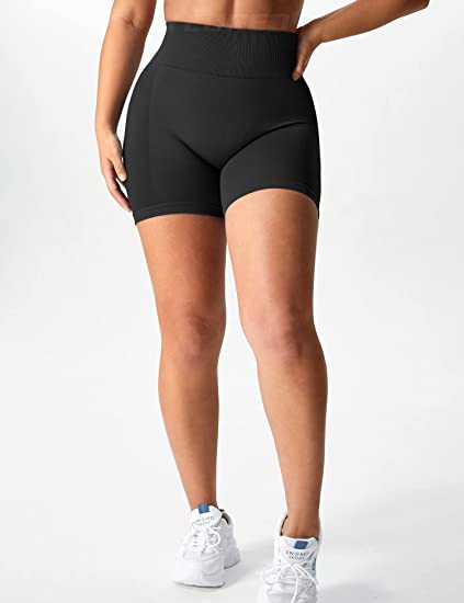 YEOREO Women Intensify Athletic Shorts Seamless Scrunch Workout Shorts High Waisted Active Gym Yoga Shorts. Black