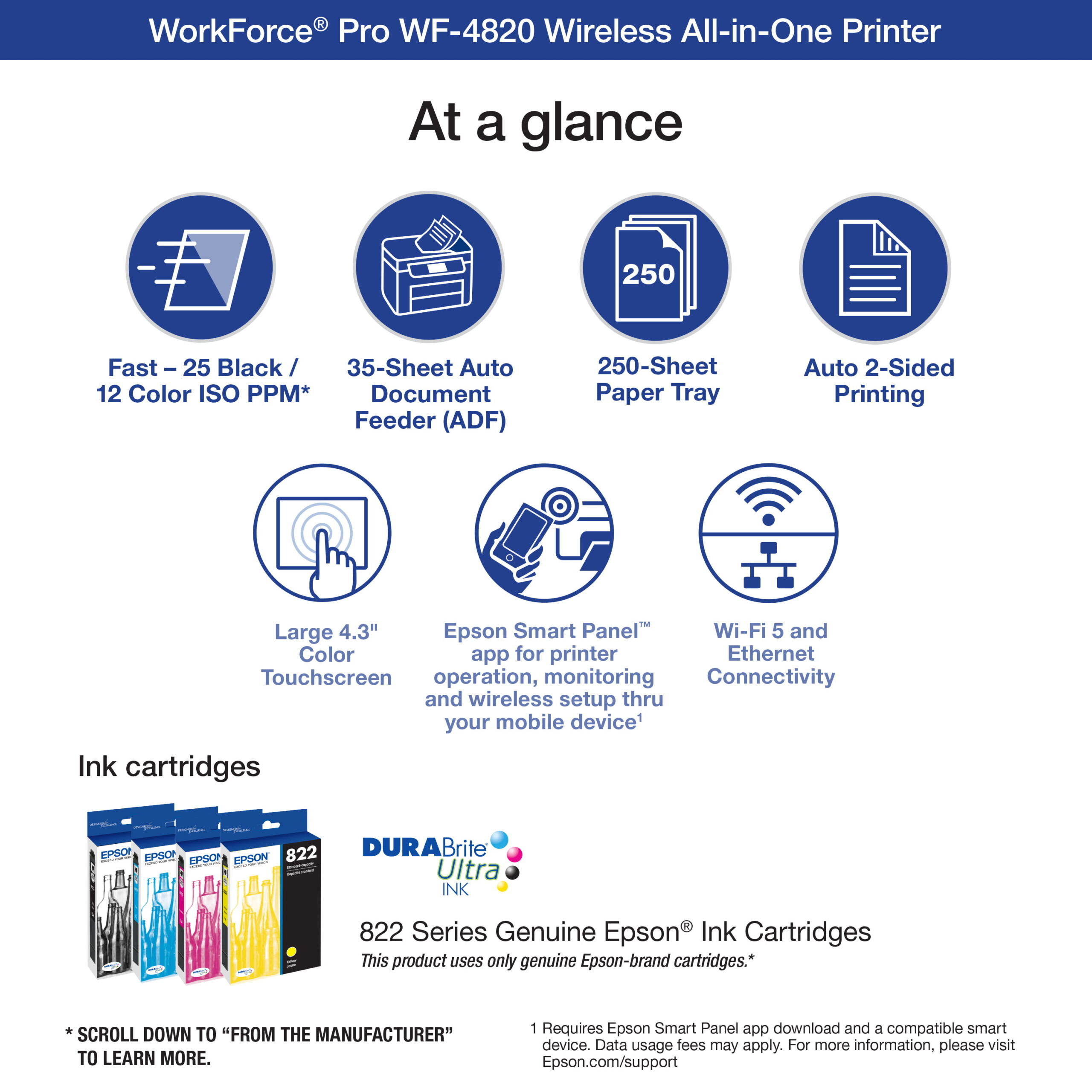 Epson WorkForce Pro WF-4820 Wireless All-in-One Printer with Auto 2-Sided Printing. 35-Page ADF. 250-Sheet Paper Tray and 4.3″ Color Touchscreen