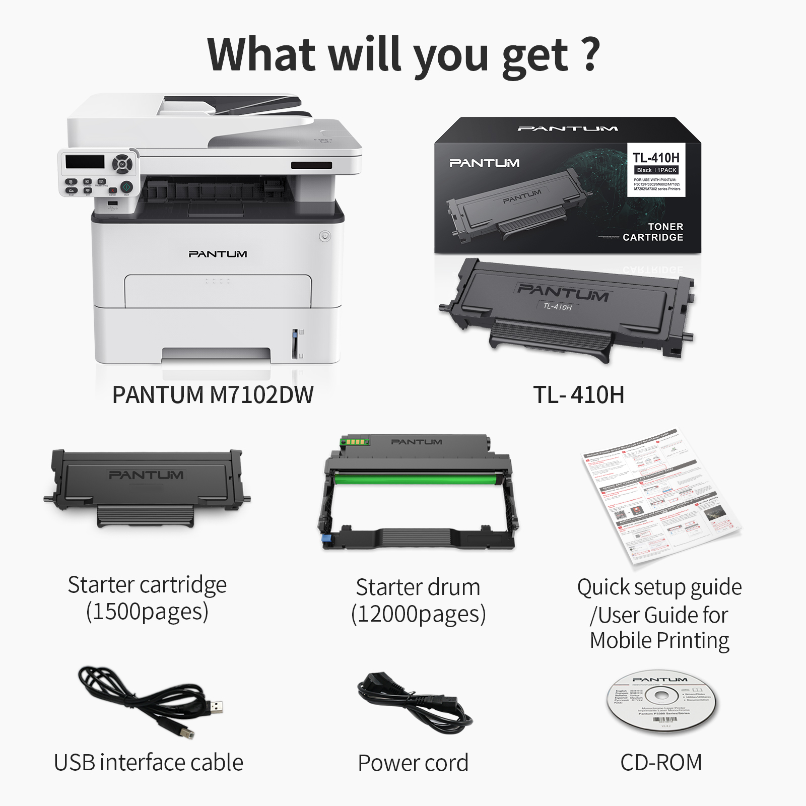 PANTUM M7102DW with 1 Pack TL-410H. Compact All-in One Monochrome Wireless Laser Printer. Copier. Scanner and Cartridge Yields up to 3000 Pages