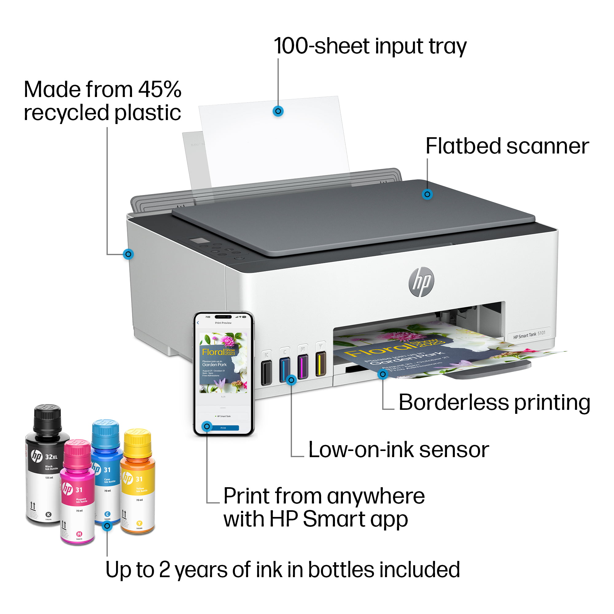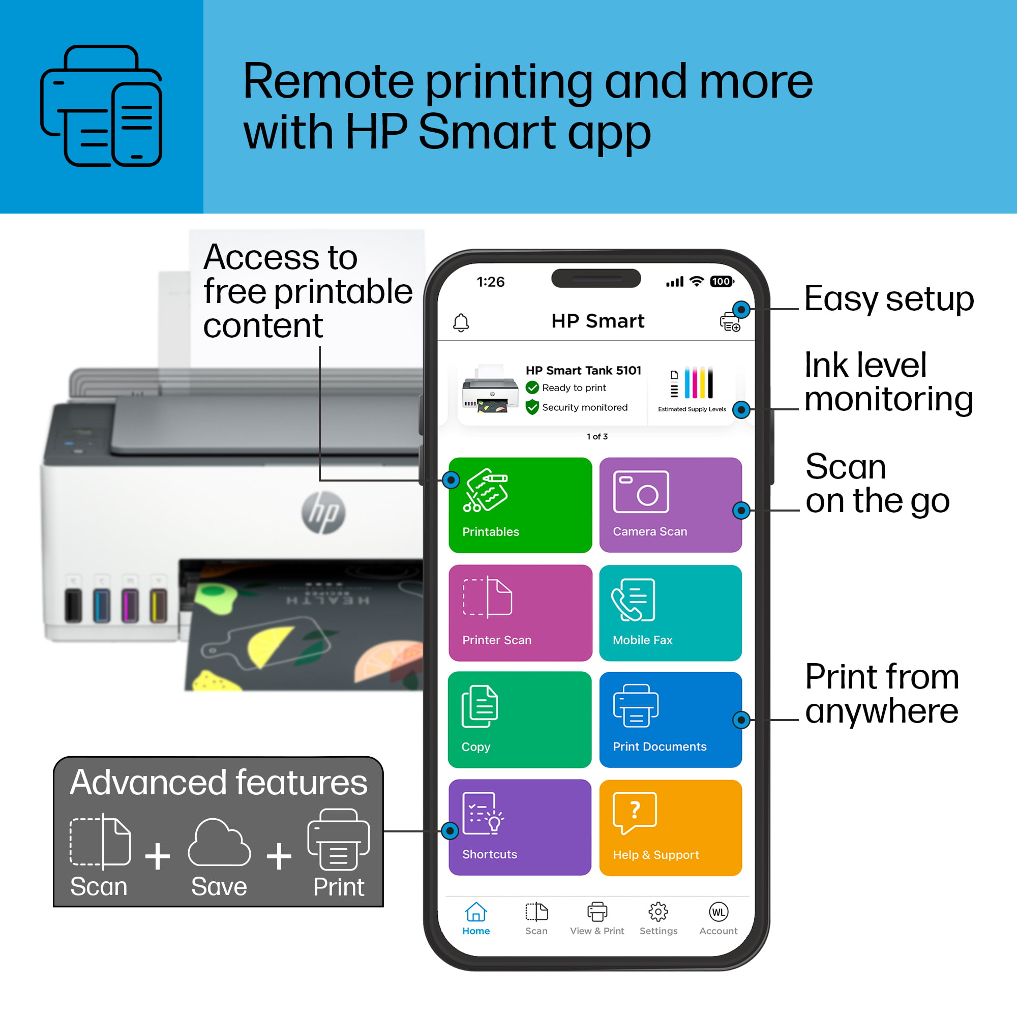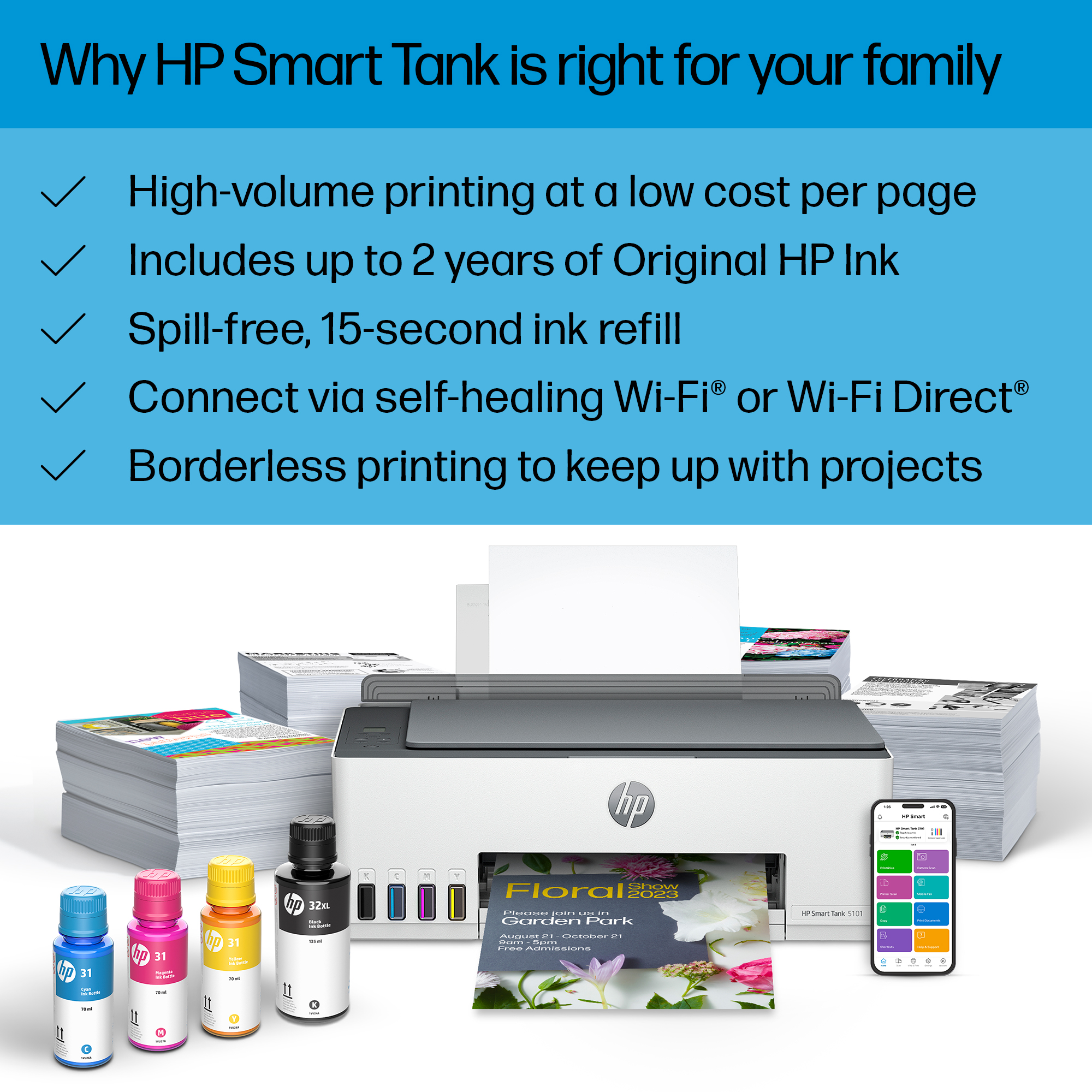 HP Smart Tank 5101 Wireless All-in-One Supertank Color home Inkjet Printer with up to 2 Years of Ink Included