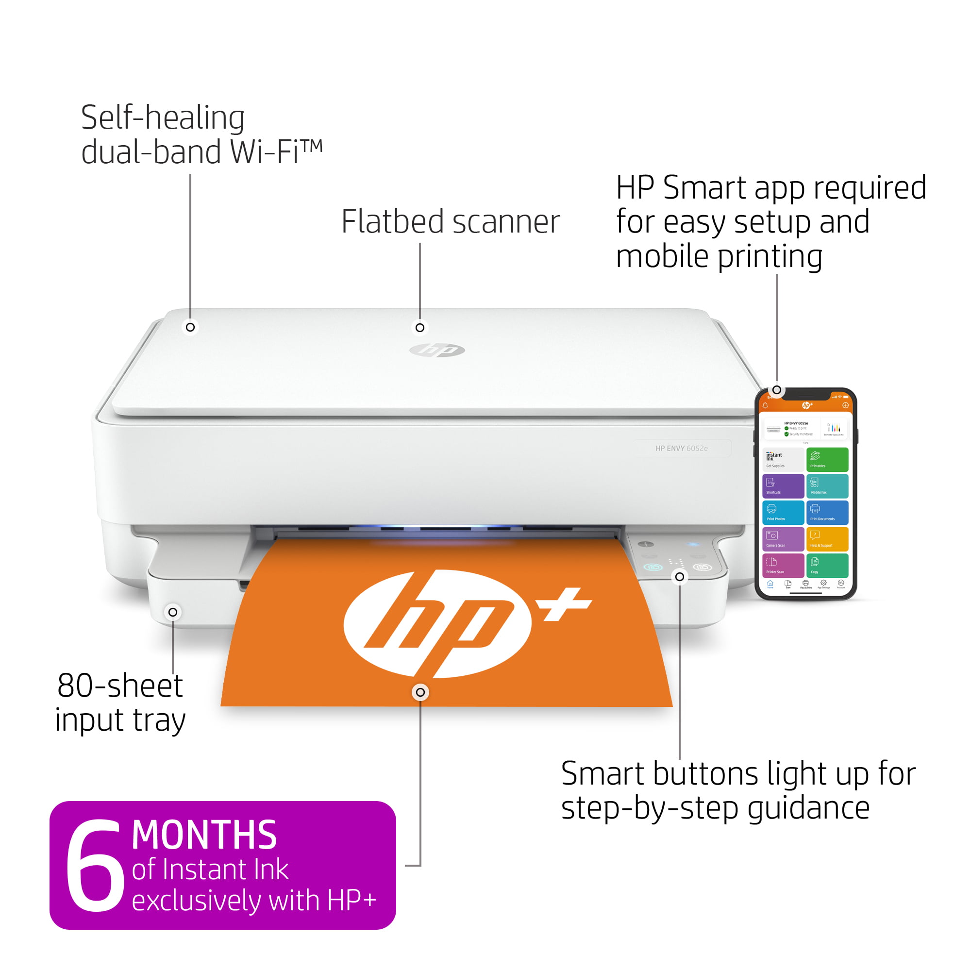 HP ENVY 6052e All-in-One Wireless Color Inkjet Printer with 6 Months Instant Ink Included with HP+
