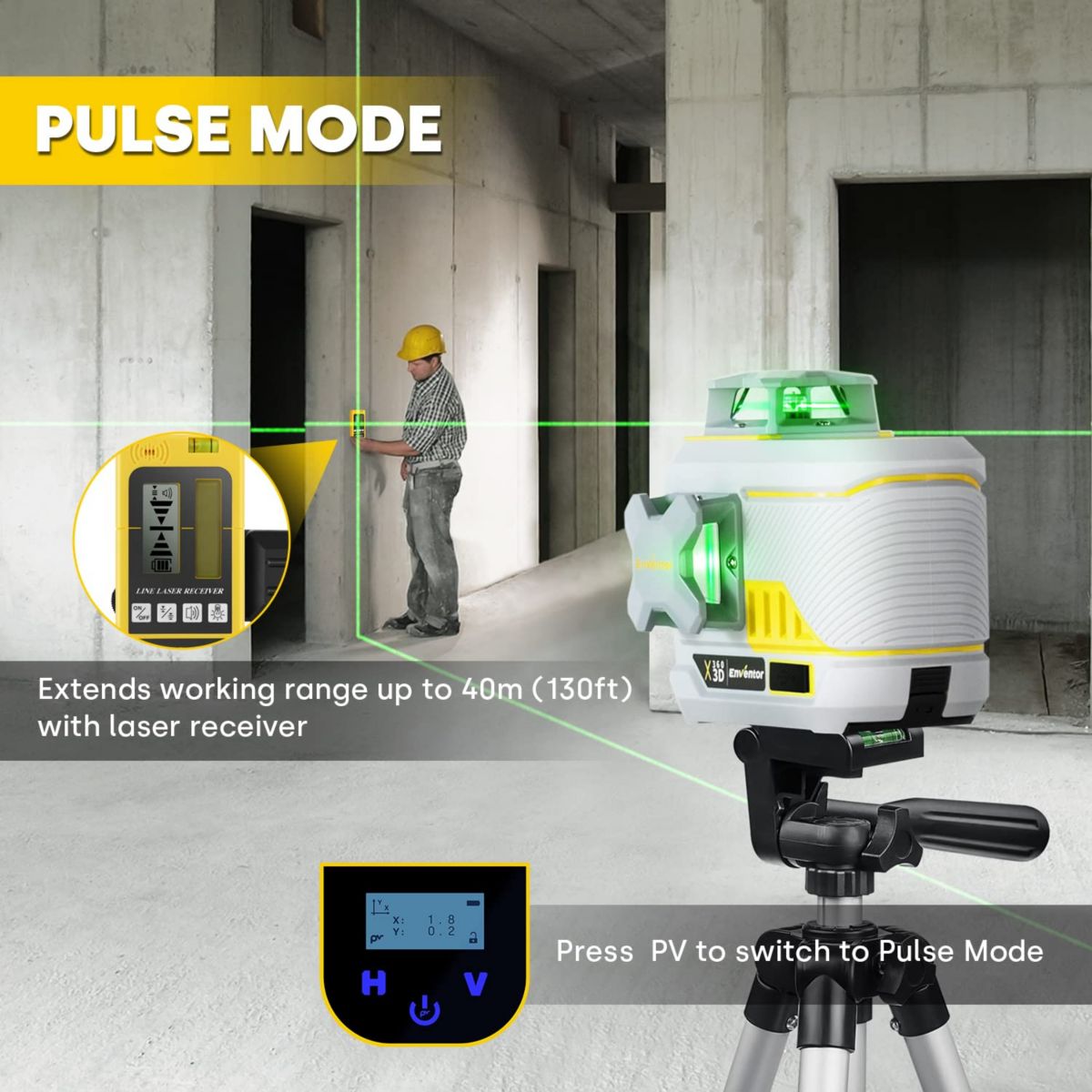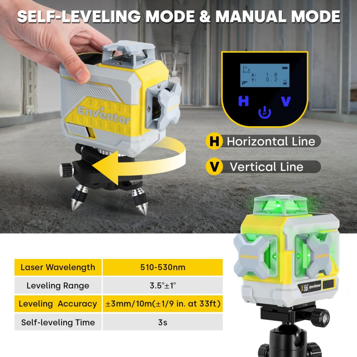 Enventor Self-Leveling Laser Level with Laser Tool Kit. 12 Green Lines. Plane-Leveling. Alignment Cross Line