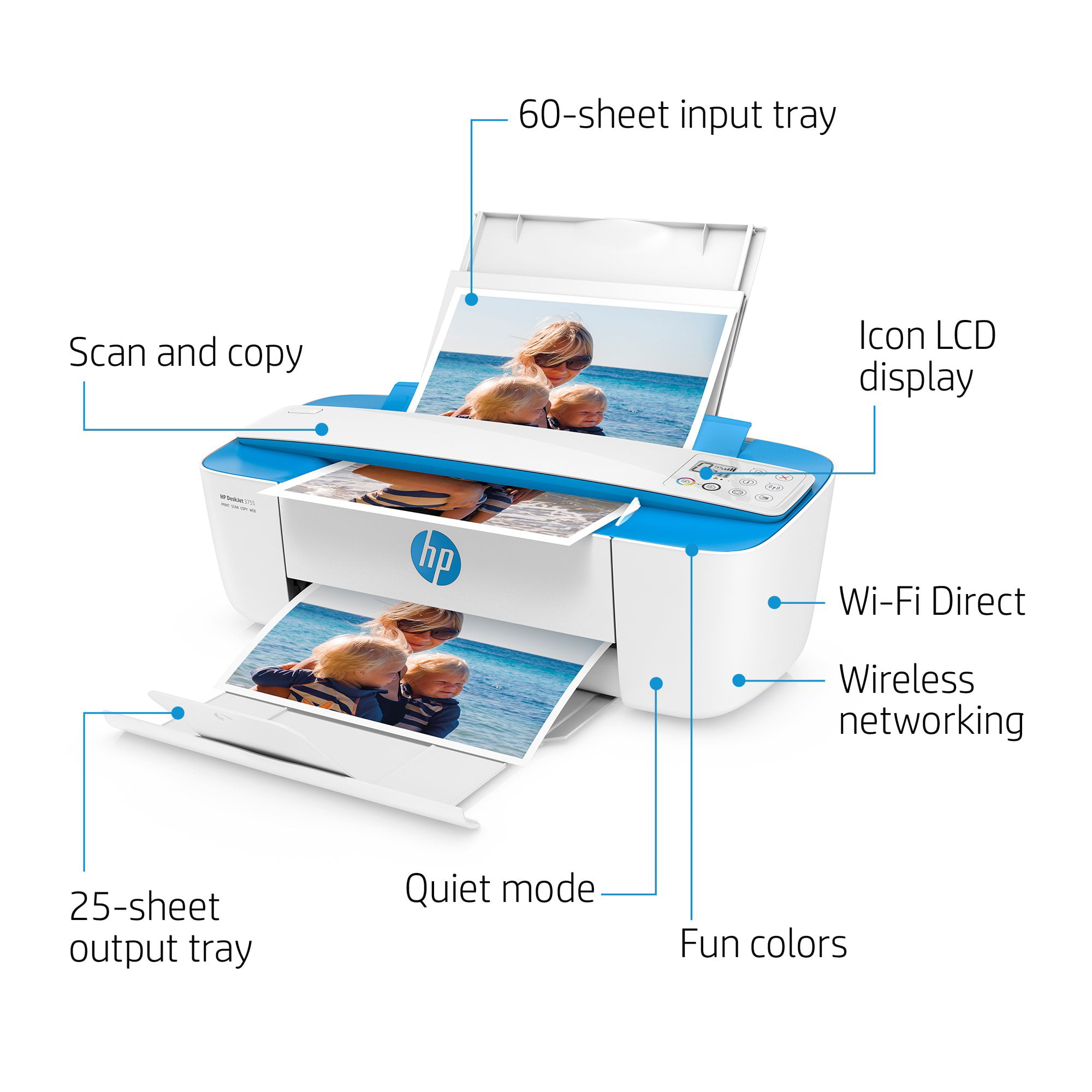 HP DeskJet 3755 All-in-One Inkjet Printer. Color Mobile Print. Copy. Scan. Blue