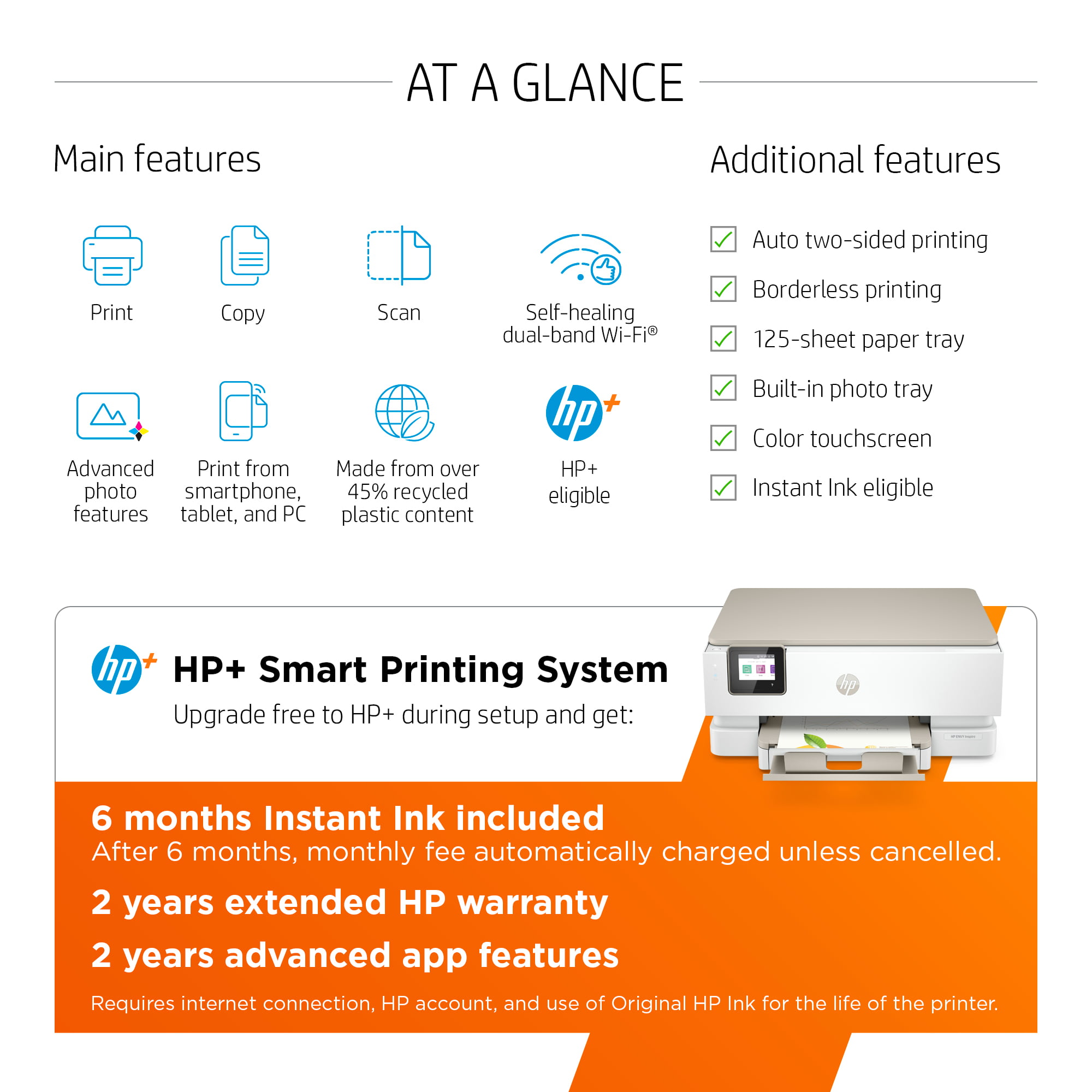 HP ENVY Inspire 7252e Wireless Color All-in-One Inkjet Printer with 6 months Instant Ink Included with HP+