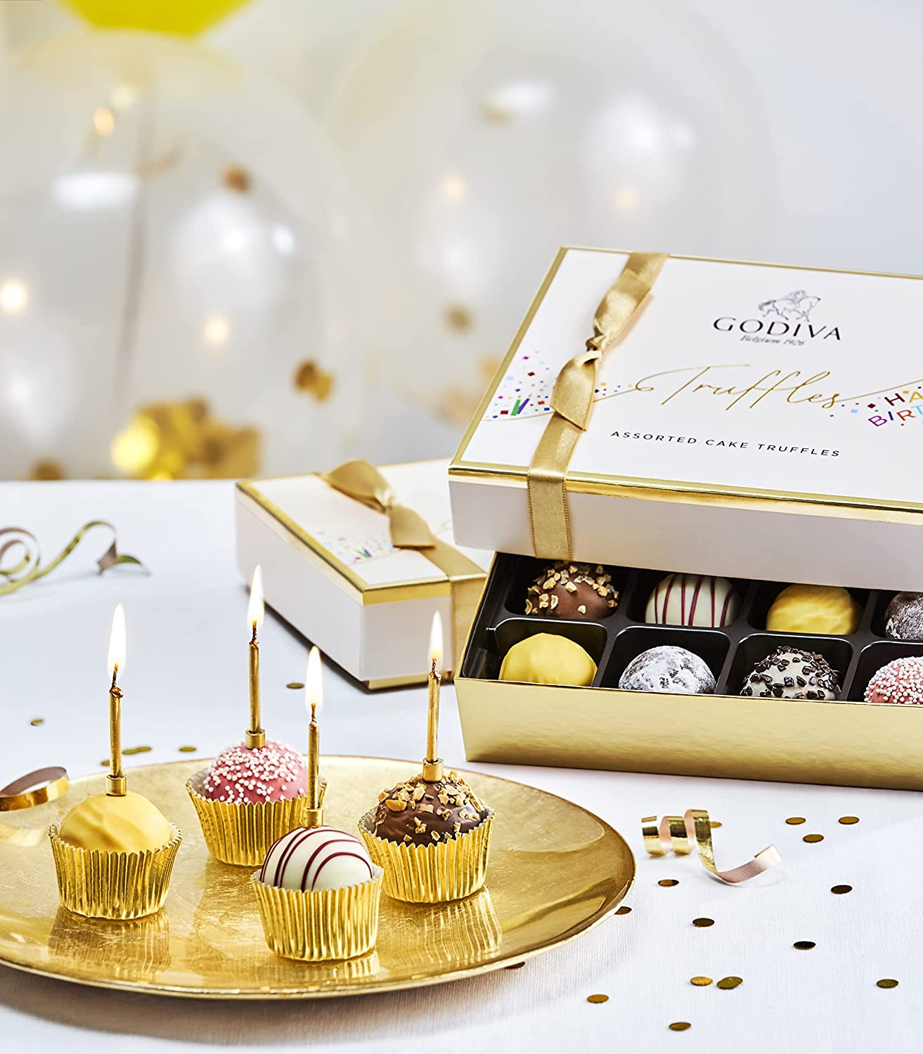 Godiva Chocolatier Assorted Chocolate Truffles Gold Gift Box. Happy Birthday Ribbon. 19-Pieces. 7.2 Ounce