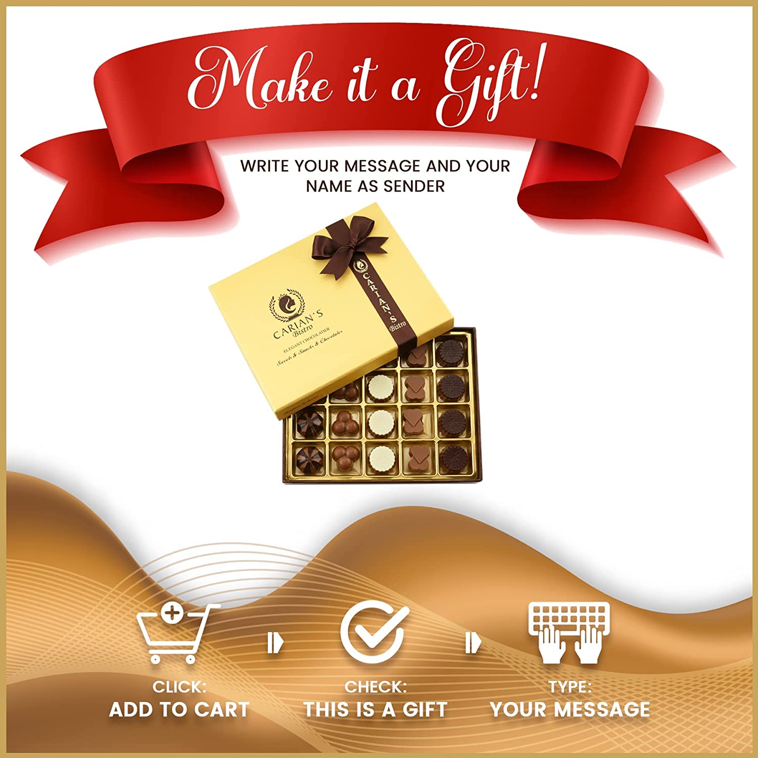 Carian-s Bistro Elegant Chocolatier Specialty Assorted Chocolates w/ Gold Gift Box