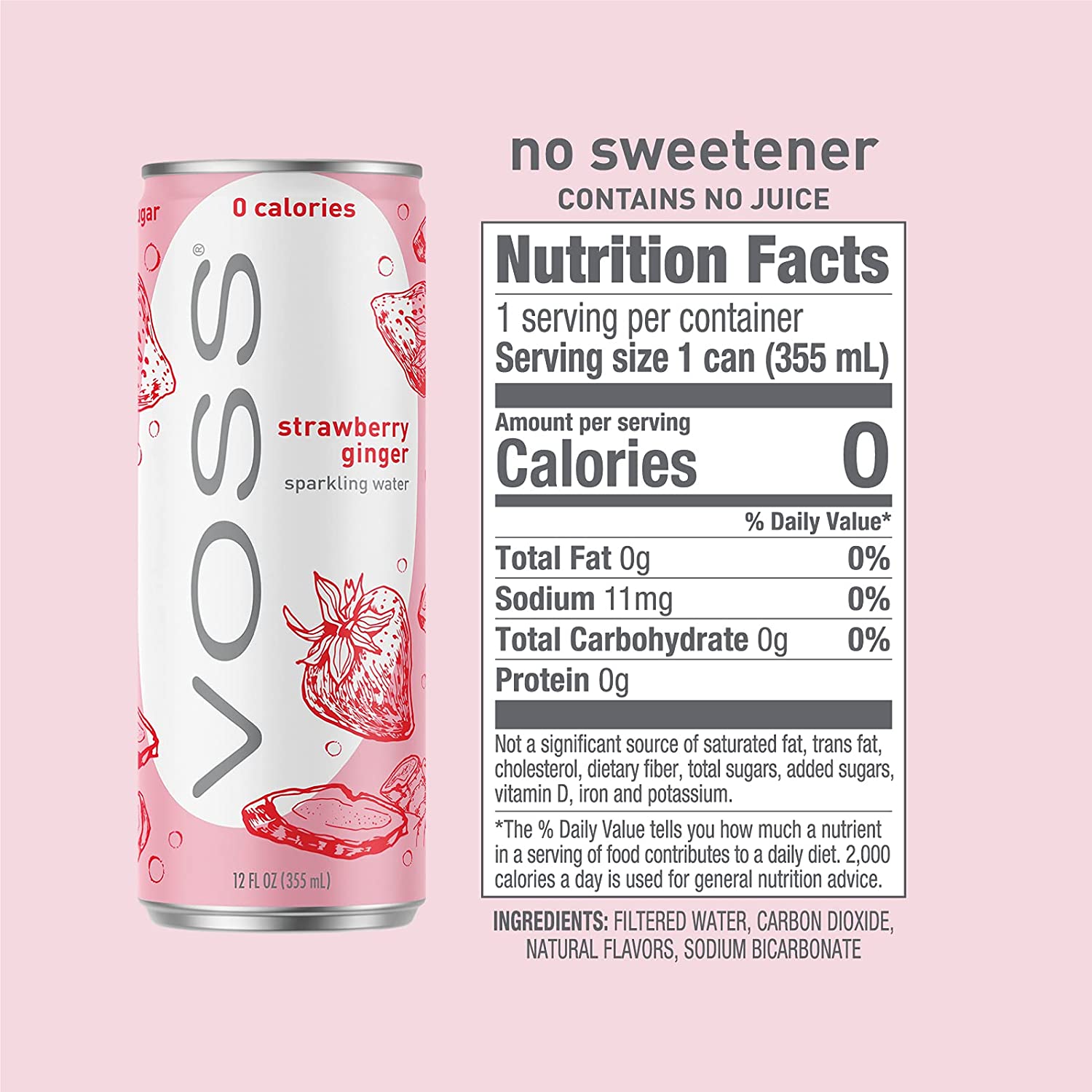 VOSS Strawberry Ginger Flavored Sparkling Water. 355ml Cans (Pack of 24)