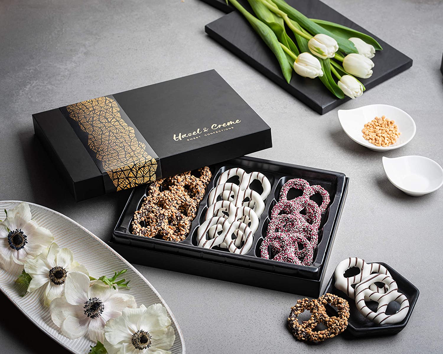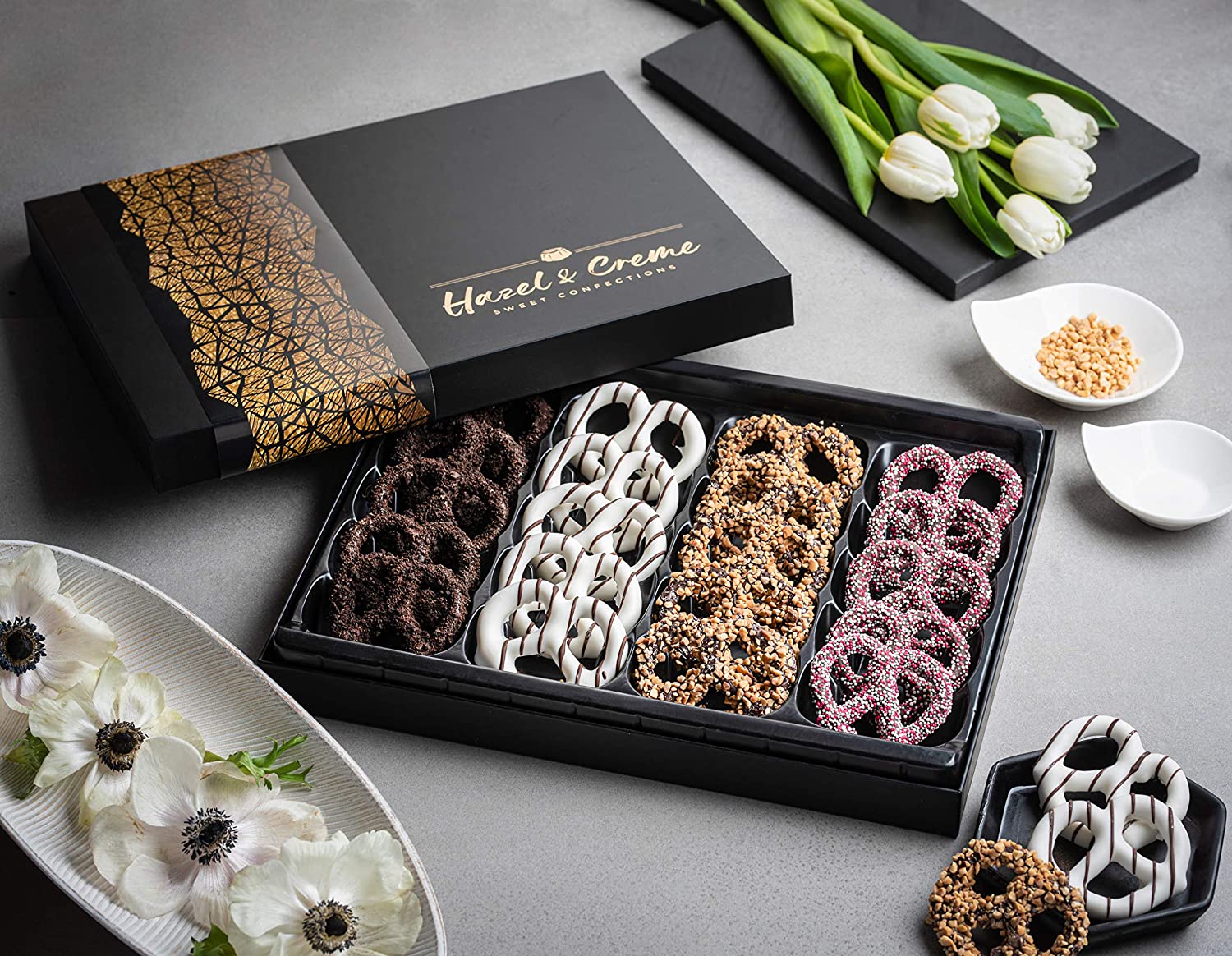 Hazel & Creme Chocolate Covered Pretzel Gift Basket - Chocolate Gift Box - Easter. Anniversary