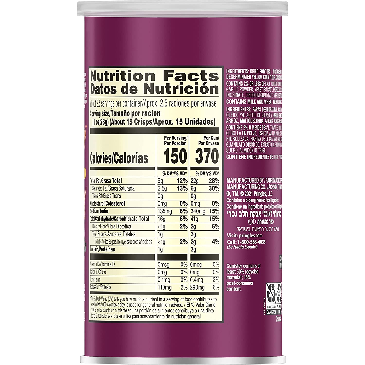 Pringles Potato Crisps Chips. BBQ Flavored. Grab and Go. 2.5 oz Can(Pack of 12)