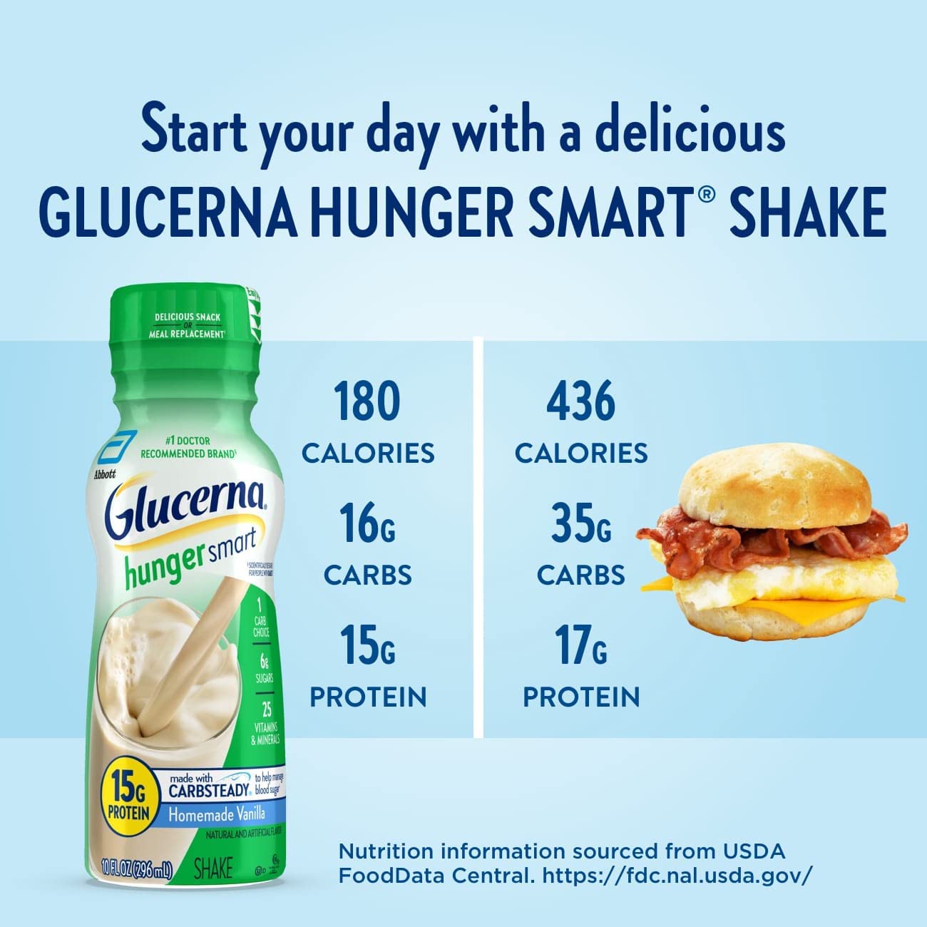 Glucerna Hunger Smart Shake. Diabetic Drink. Blood Sugar Management. 15g Protein. 180 Calories. Homemade Vanilla
