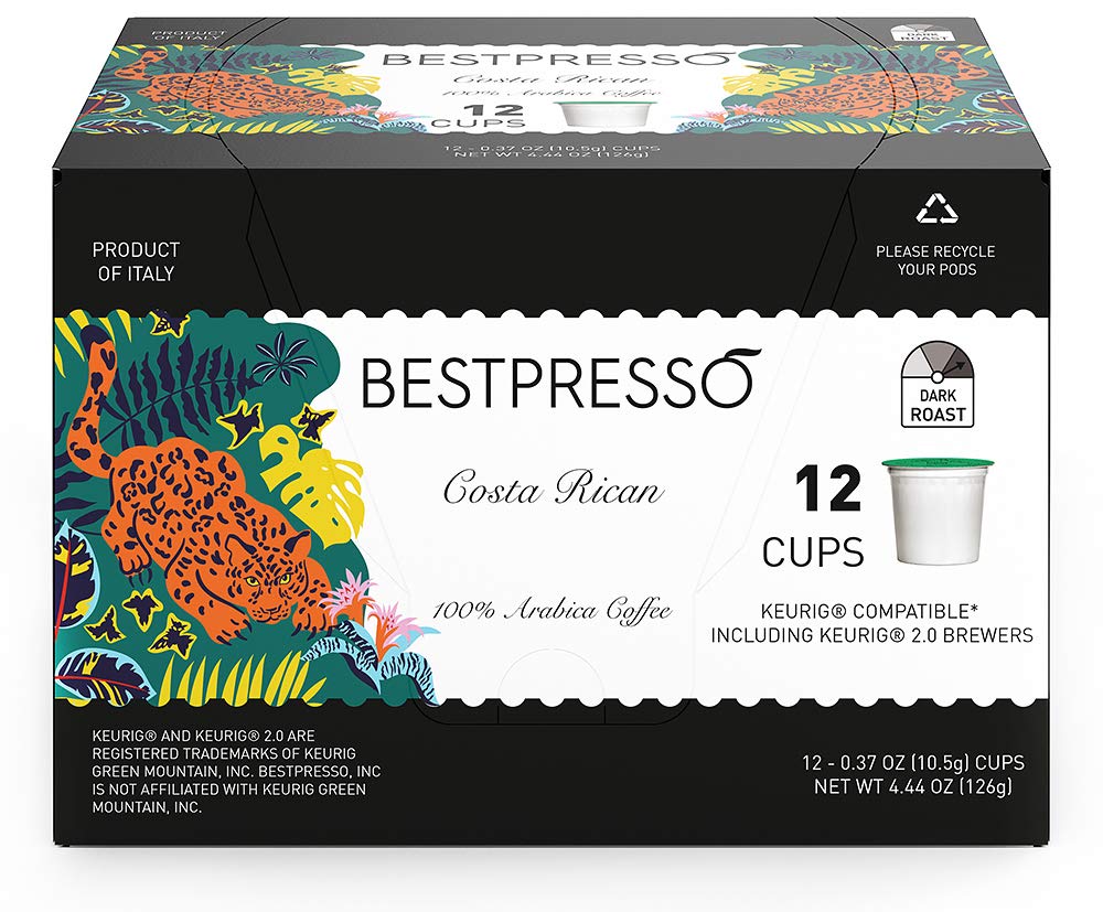 Bestpresso Coffee. Costa Rican Dark Roast Single Serve K-Cup Pods. 96 Count (Compatible With 2.0 Keurig Brewers) 8 Packs Of 12 Cups