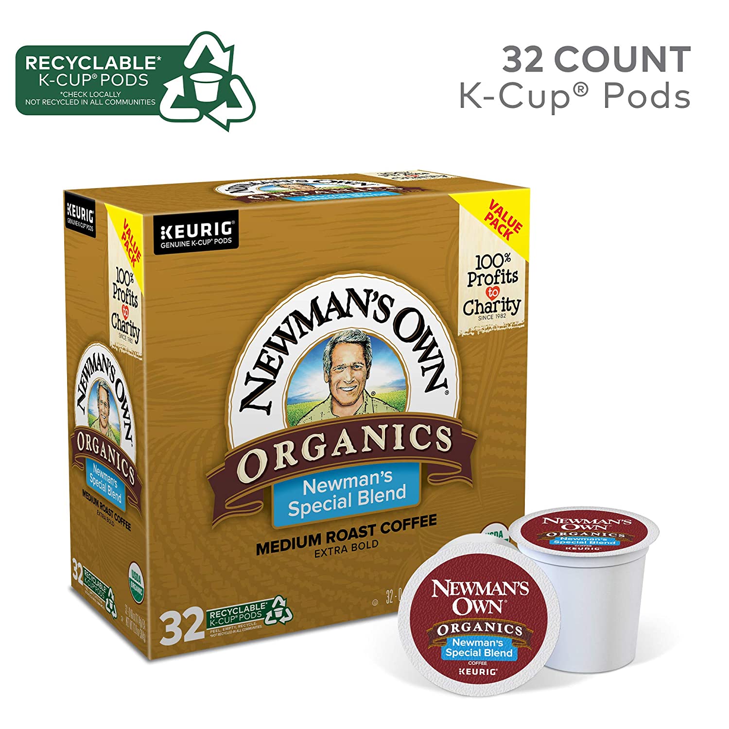 Newman-s Own Organics Special Blend. Single-Serve Keurig K-Cup Pods. Medium Roast Coffee. 32 Count