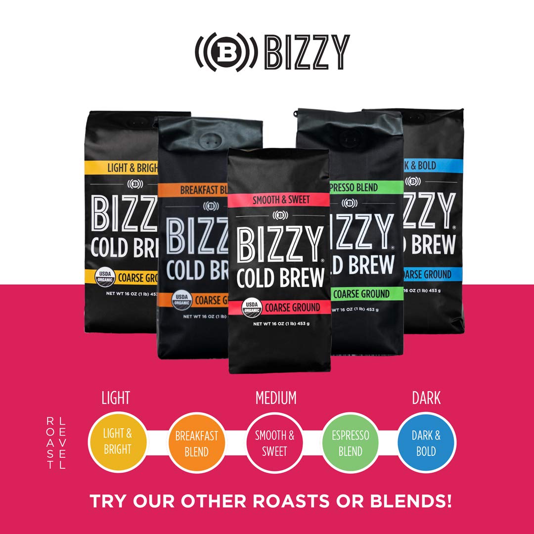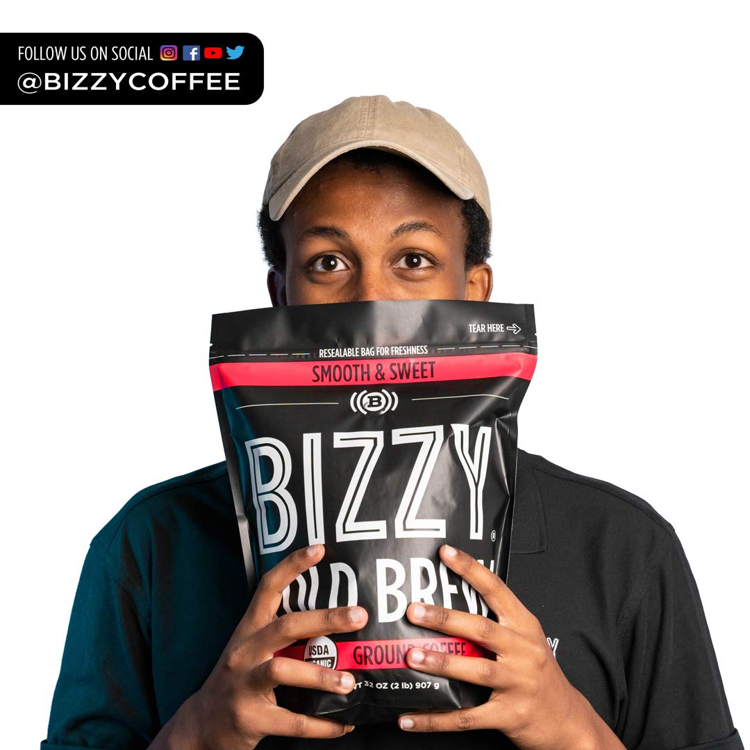 Bizzy Organic Cold Brew Coffee | Smooth & Sweet Blend | Coarse Ground Coffee | Micro Sifted | Specialty Grade | 100% Arabica | 2 LB