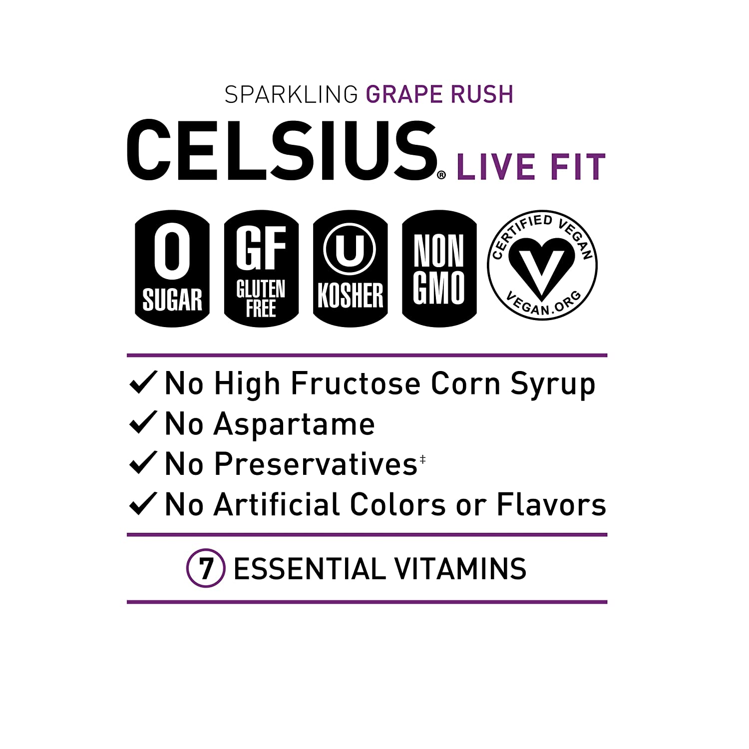 CELSIUS Essential Energy Drink 12 Fl Oz. Sparkling Grape Rush (Pack of 12)