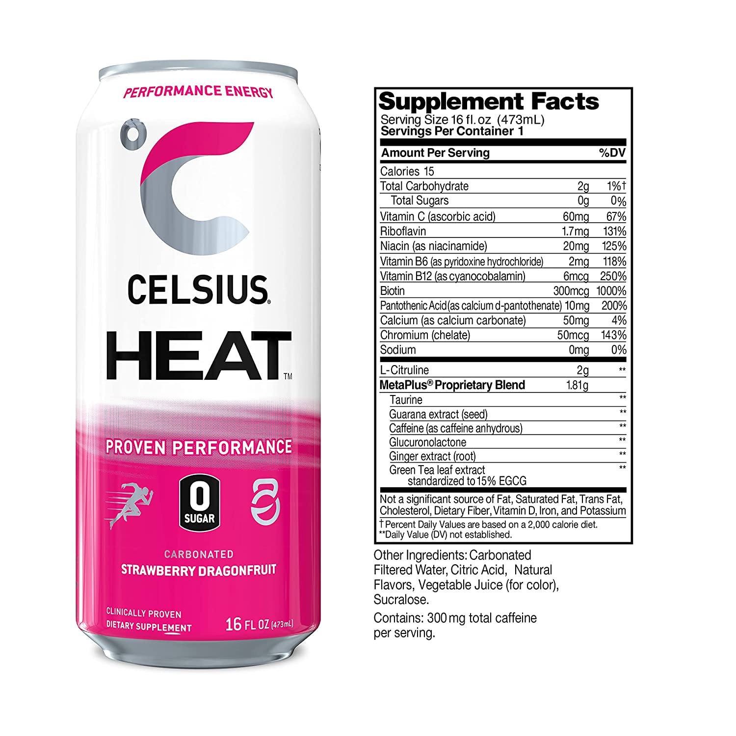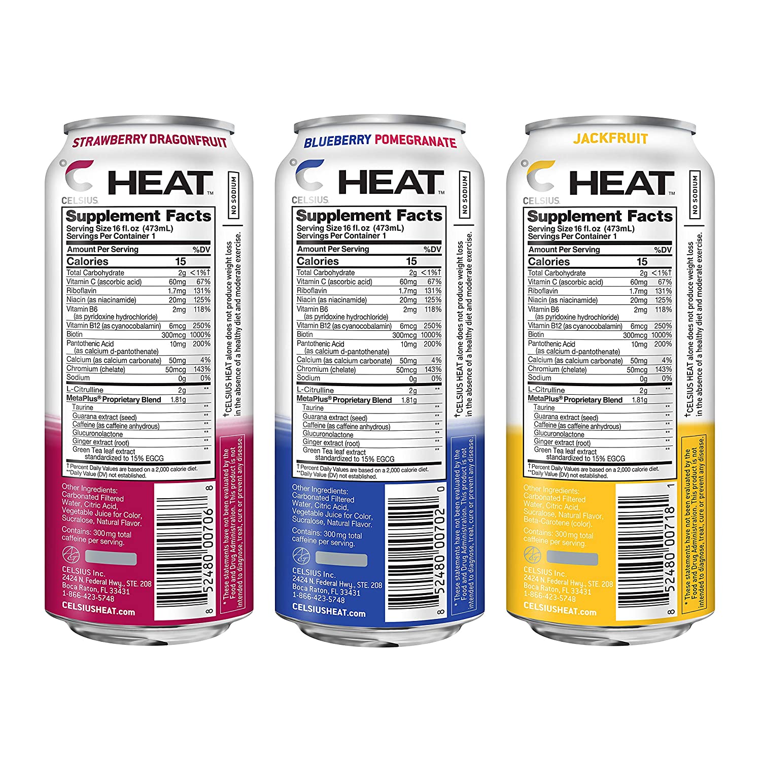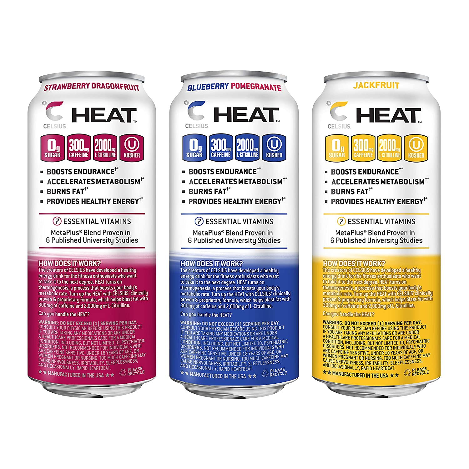 CELSIUS HEAT Performance Energy Drink 3-Flavor Variety Pack. Zero Sugar. 16oz. Can (Pack of 12)
