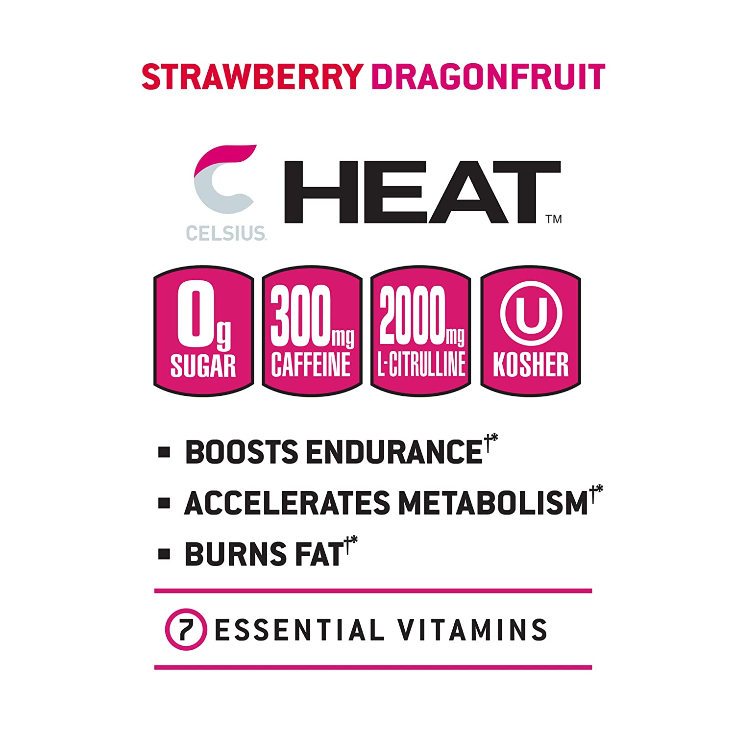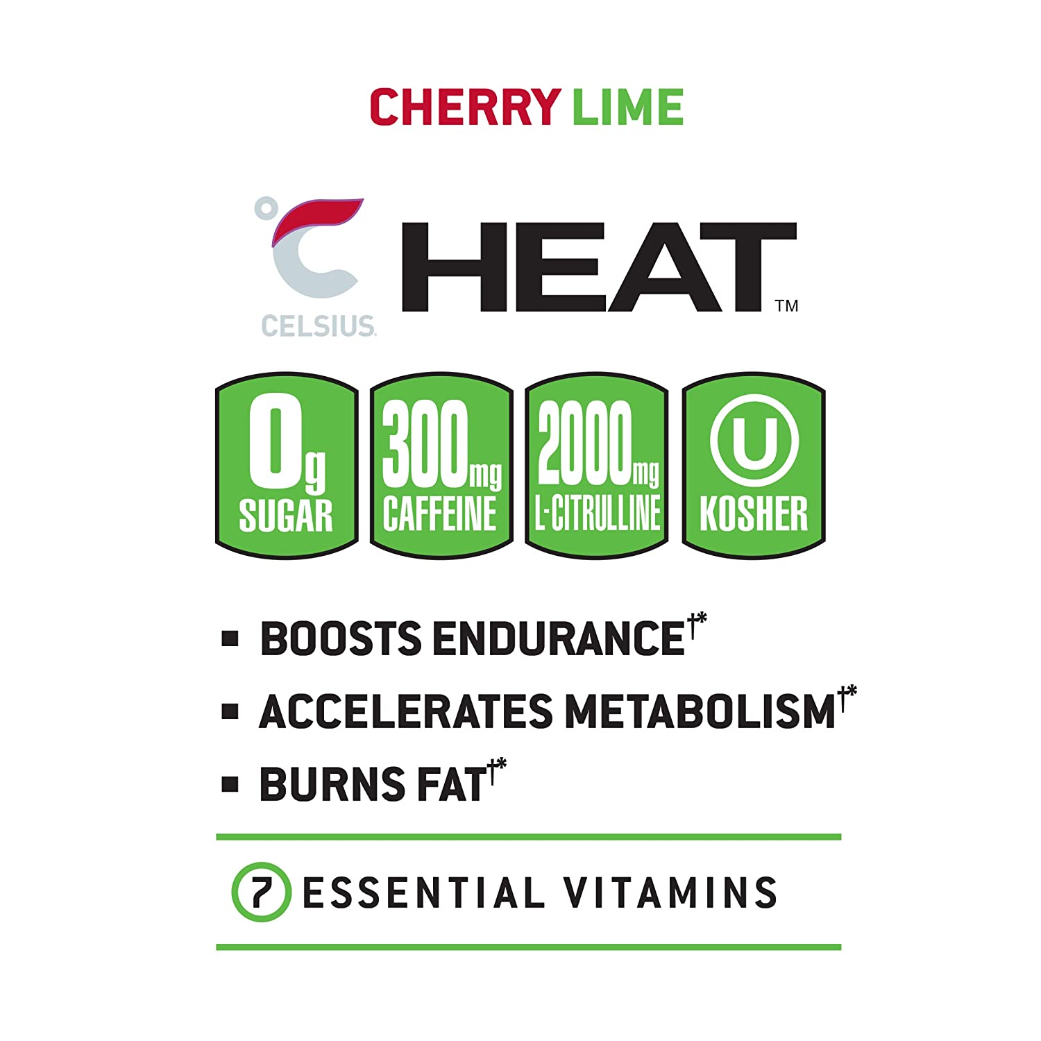 CELSIUS HEAT Performance Energy Drink. Zero Sugars. Cherry Lime. 192 Fl Oz (Pack of 12)