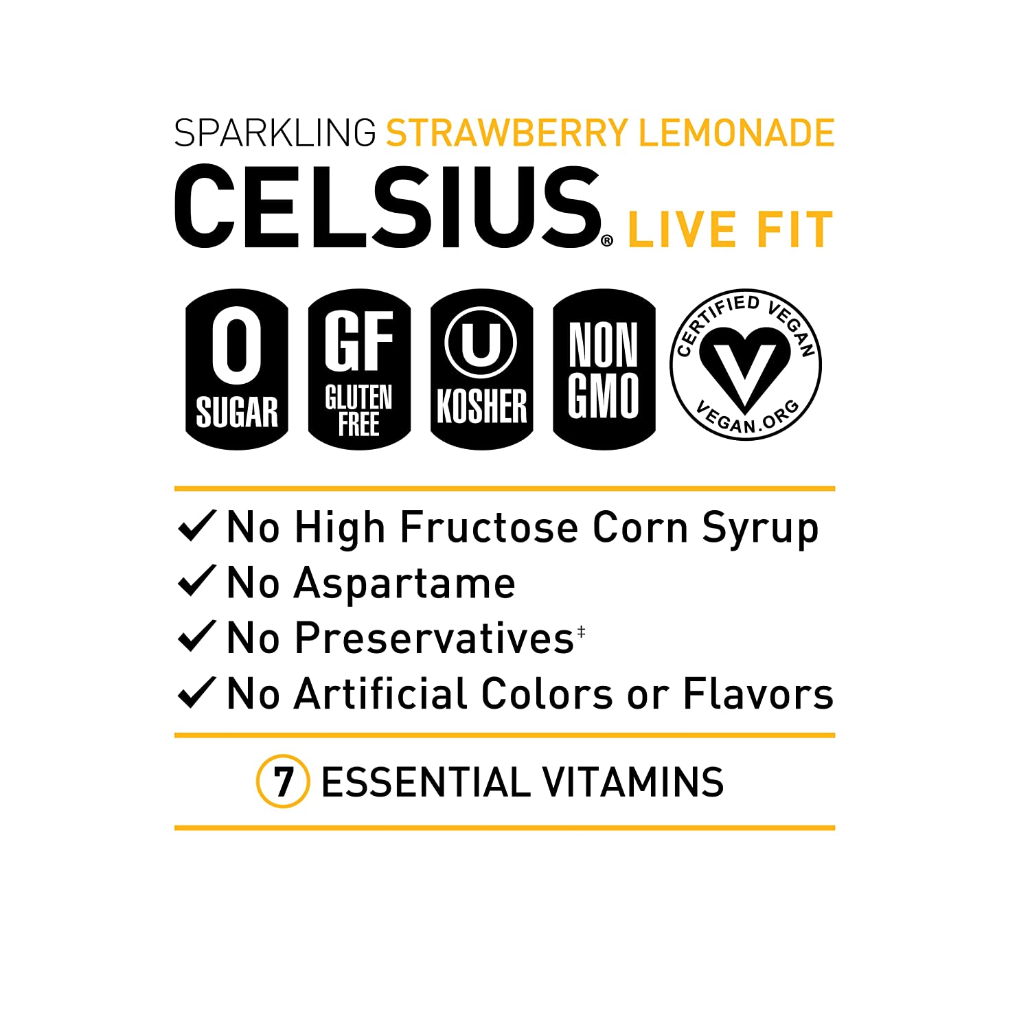 CELSIUS Essential Energy Drink 12 Fl Oz. Zero Sugar. Sparkling Strawberry Lemonade (Pack of 12)