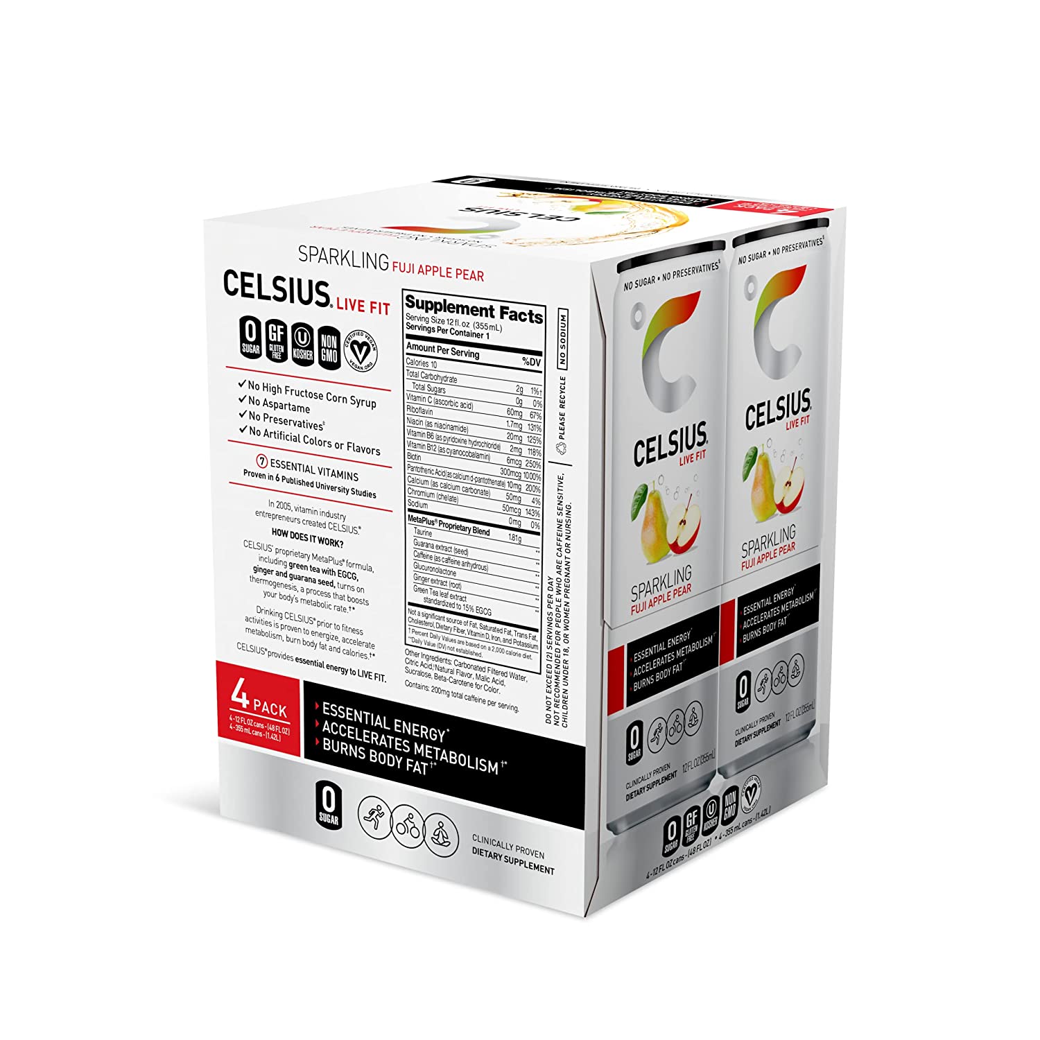 CELSIUS Essential Energy Drink 12 Fl Oz. Sparkling Fuji Apple Pear (Pack of 24)