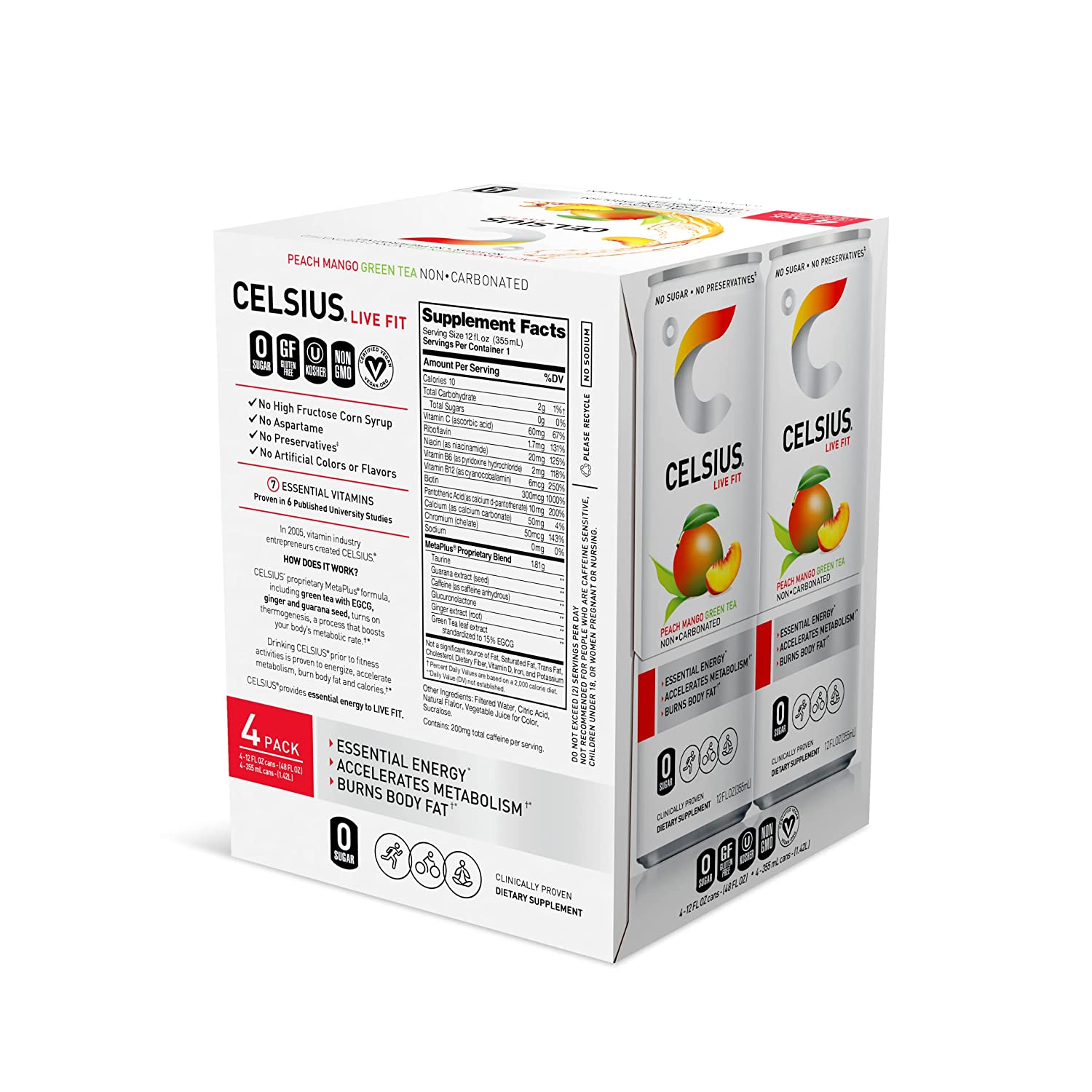 CELSIUS Essential Energy Drink 12 Fl Oz. Peach Mango Green Tea (Pack of 24)
