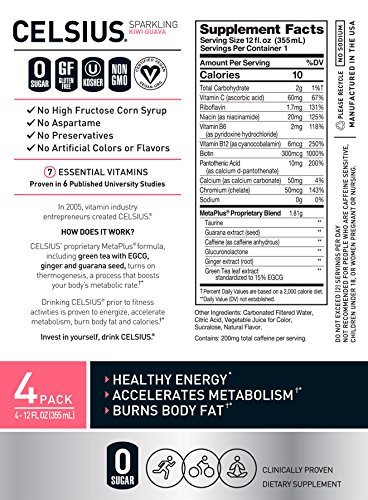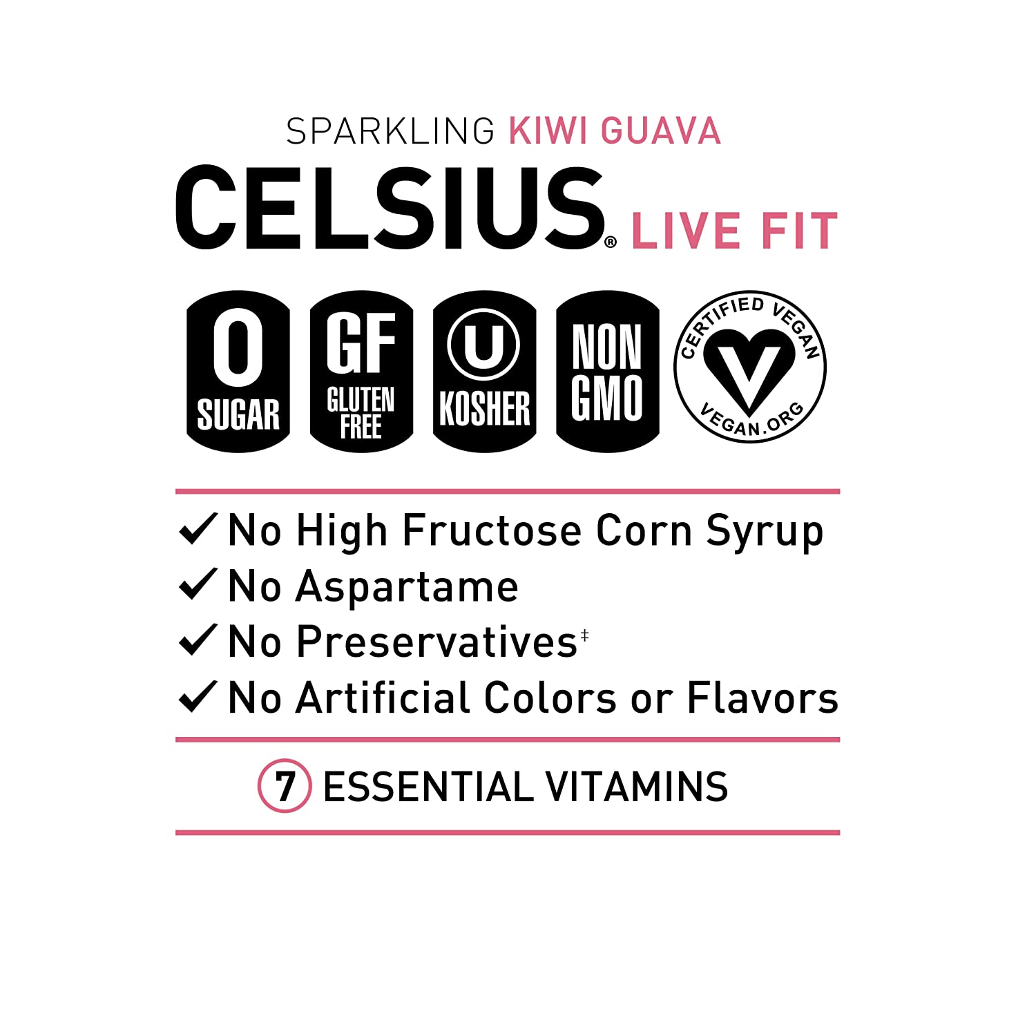 CELSIUS Essential Energy Drink 12 Fl Oz. Sparkling Kiwi Guava (Pack of 24)