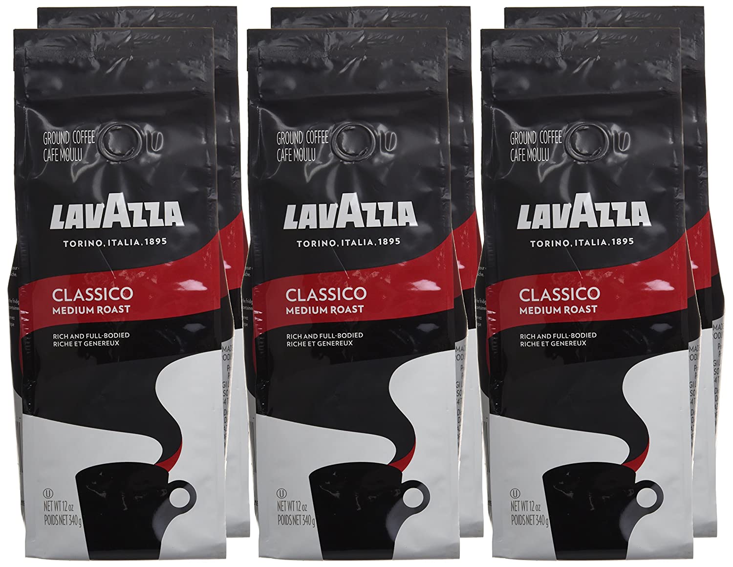 Lavazza Classico Ground Coffee Blend Medium Roast. 12-Ounce Bags (Pack of 6) Authentic Italian. Value Pack. Blended And Roated in Italy. Rich Flavor with Notes of Dried Fruit