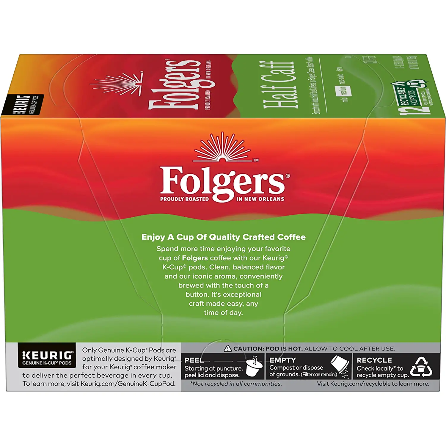 Folgers Half-Caff Coffee Medium Roast 72 Keurig K Cup Pods.12 Count (Pack of 6)