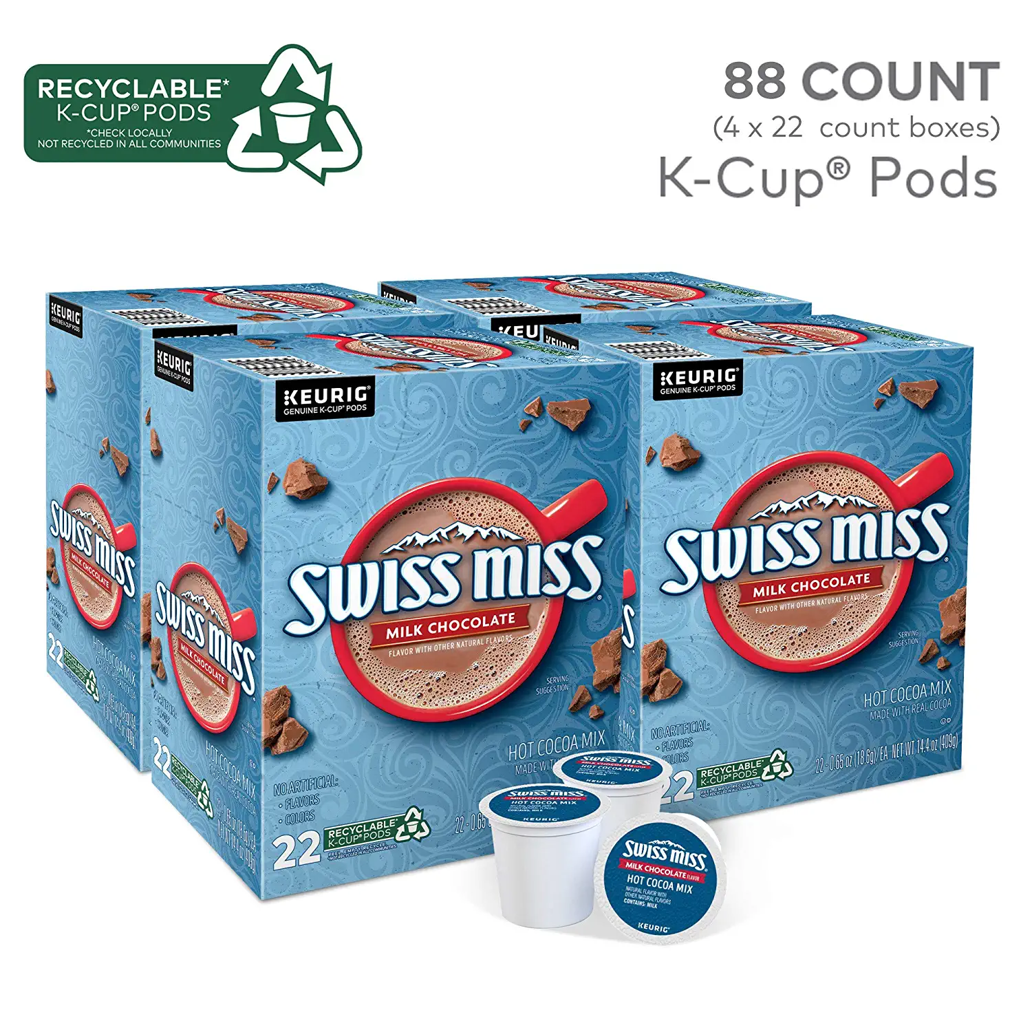 Swiss Miss Milk Chocolate Hot Cocoa Keurig Single Serve K Cup Pods Flavored K Cups 88Count