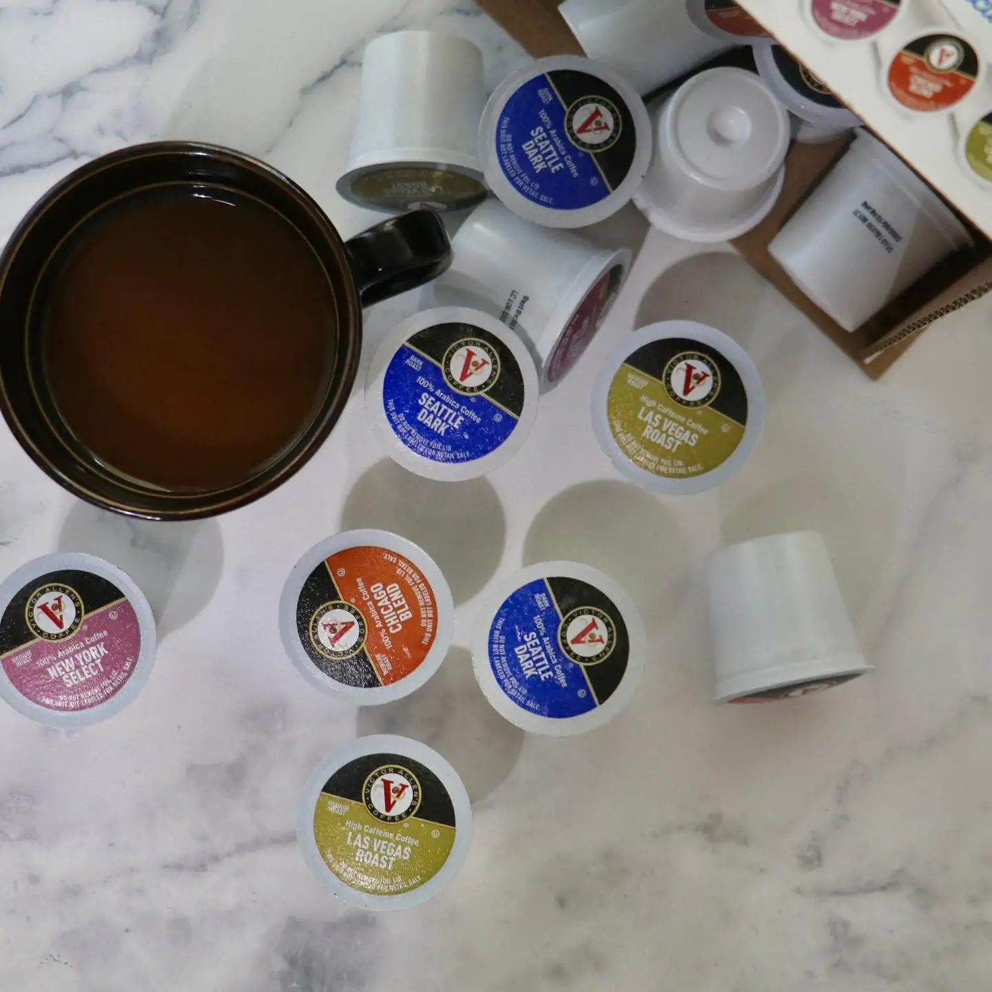 Victor Allen-s Coffee Across America Variety Pack (Seattle Dark. New York Select. Chicago Blend. Las Vegas Roast). 96 Count. Single Serve Coffee Pods for Keurig K-Cup Brewers