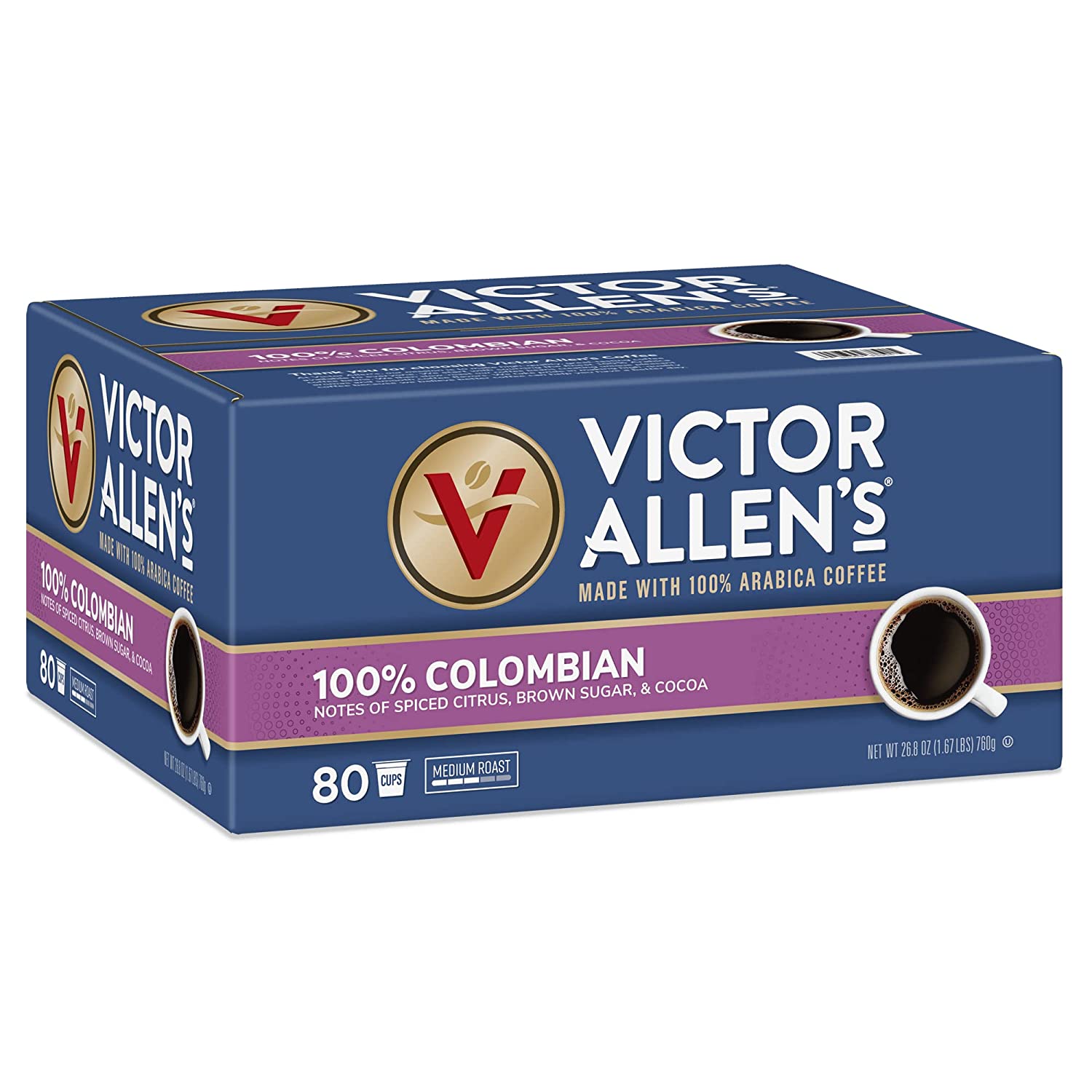 Victor Allen-s Coffee 100% Colombian Medium Roast 80 Count. Single Serve Coffee Pods for Keurig K-Cup Brewers