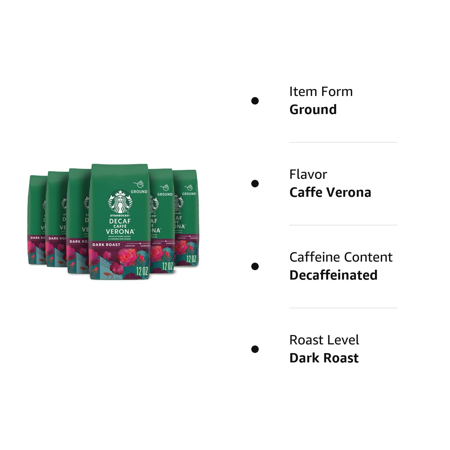 Starbucks Decaf Caffé Verona Dark Roast Ground Coffee. 12 Ounce (Pack of 6)