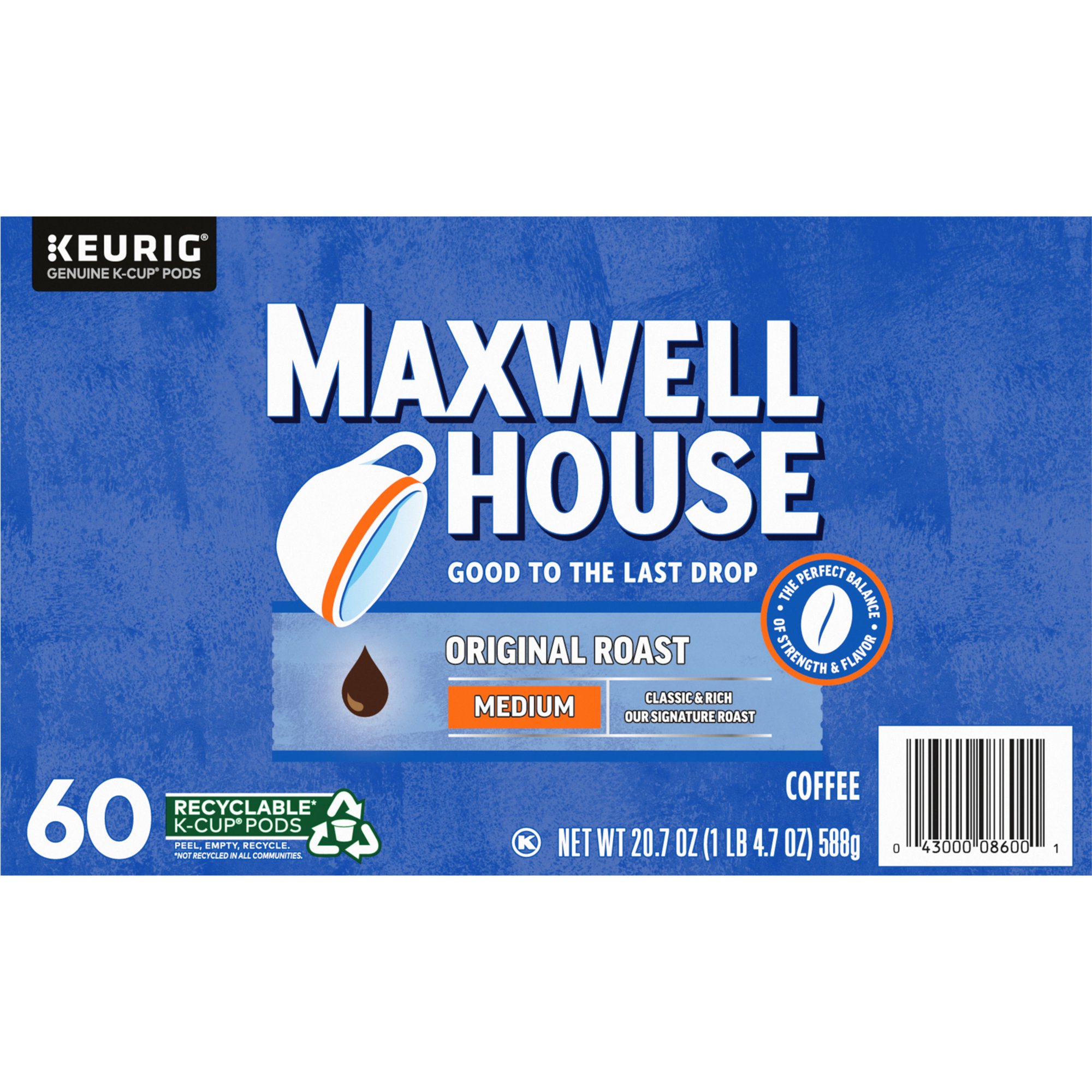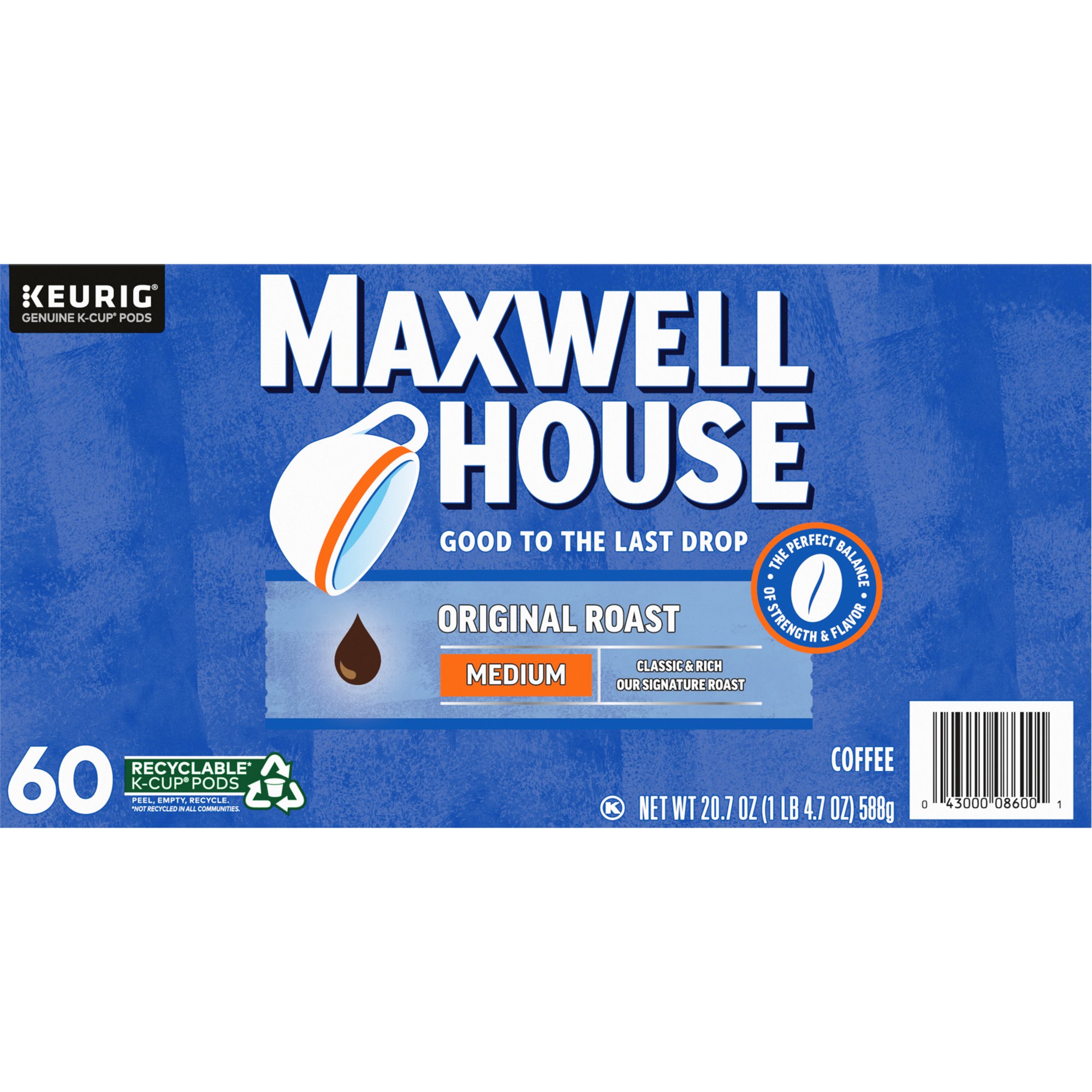 Maxwell House Original Roast Medium Roast K-Cup Coffee Pods 60 ct. Box