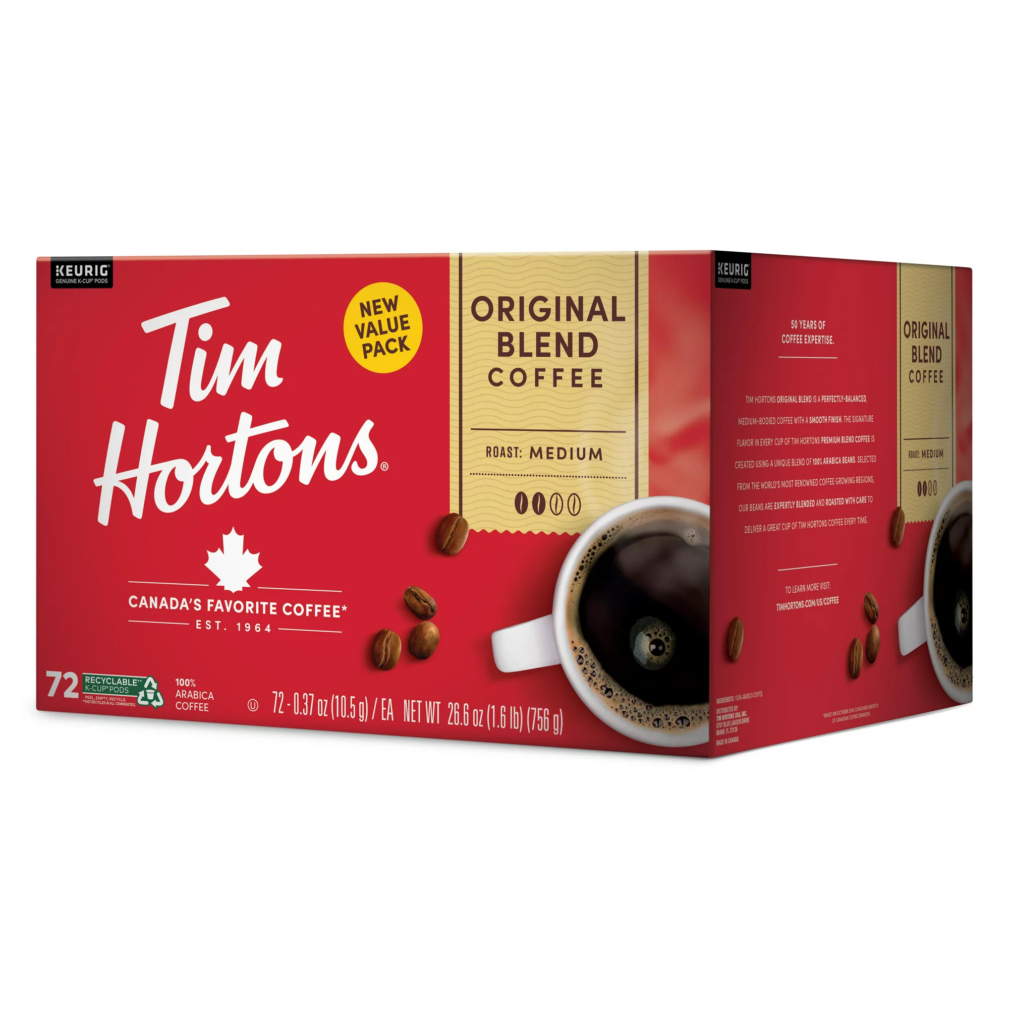 Tim Hortons Original Blend Medium Roast Keurig Coffee Pods 72 Ct