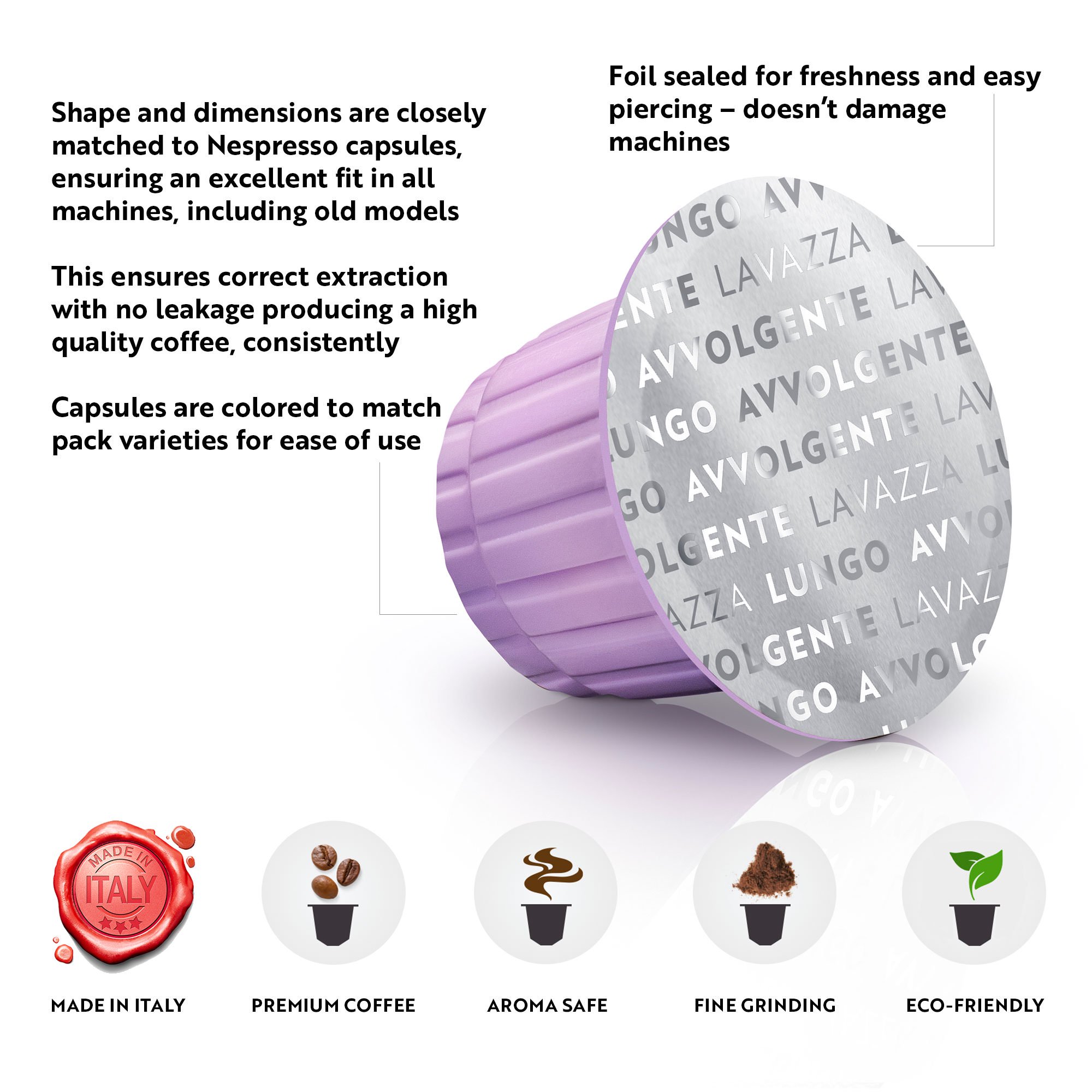 Lavazza Nespresso Compatible Capsules Avvolgente Lungo Dark Roast Coffee (Pack of 60)