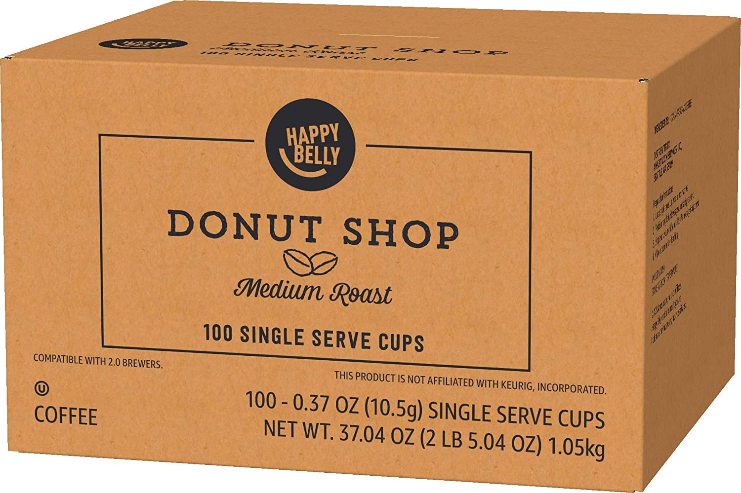 Happy Belly 100 Ct. Medium-Light Roast Coffee Pods Donut Style Compatible with Keurig 2.0 K-Cup Brewers