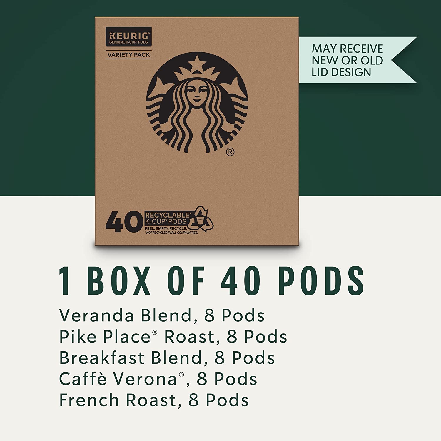 Starbucks K-Cup Coffee Pods Starbucks Blonde. Medium. Dark Roast & Flavored Coffee. Variety Pack for Keurig Brewers. 1 box (40 pods total)