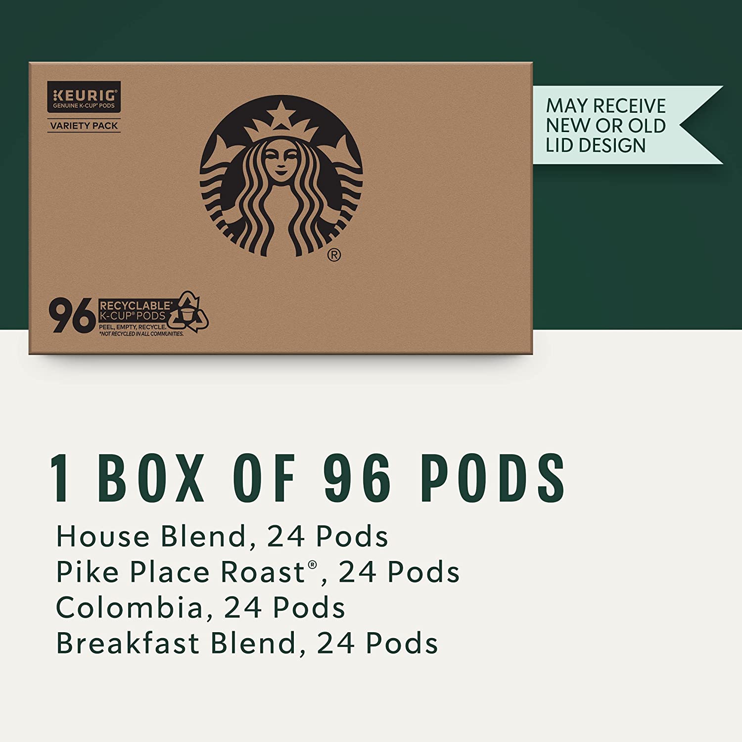 Starbucks K-Cup Coffee Pods Medium Roast Coffee Variety Pack 100% Arabica 1 box (96 pods)