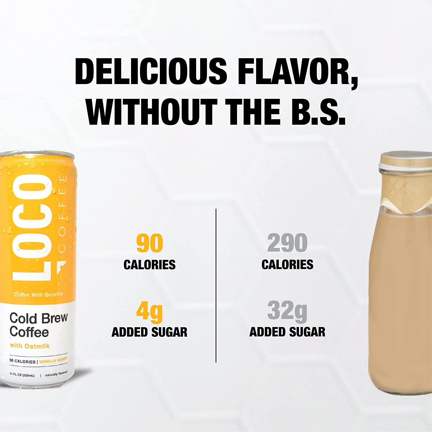 Loco Life Brew Vanilla Honey Cold Brew Coffee With Oat Milk and Coconut Water 11 Ounce Can Pack of 12. Gluten Free and Dairy Free. Low Sugar. Low Calorie Iced Coffee