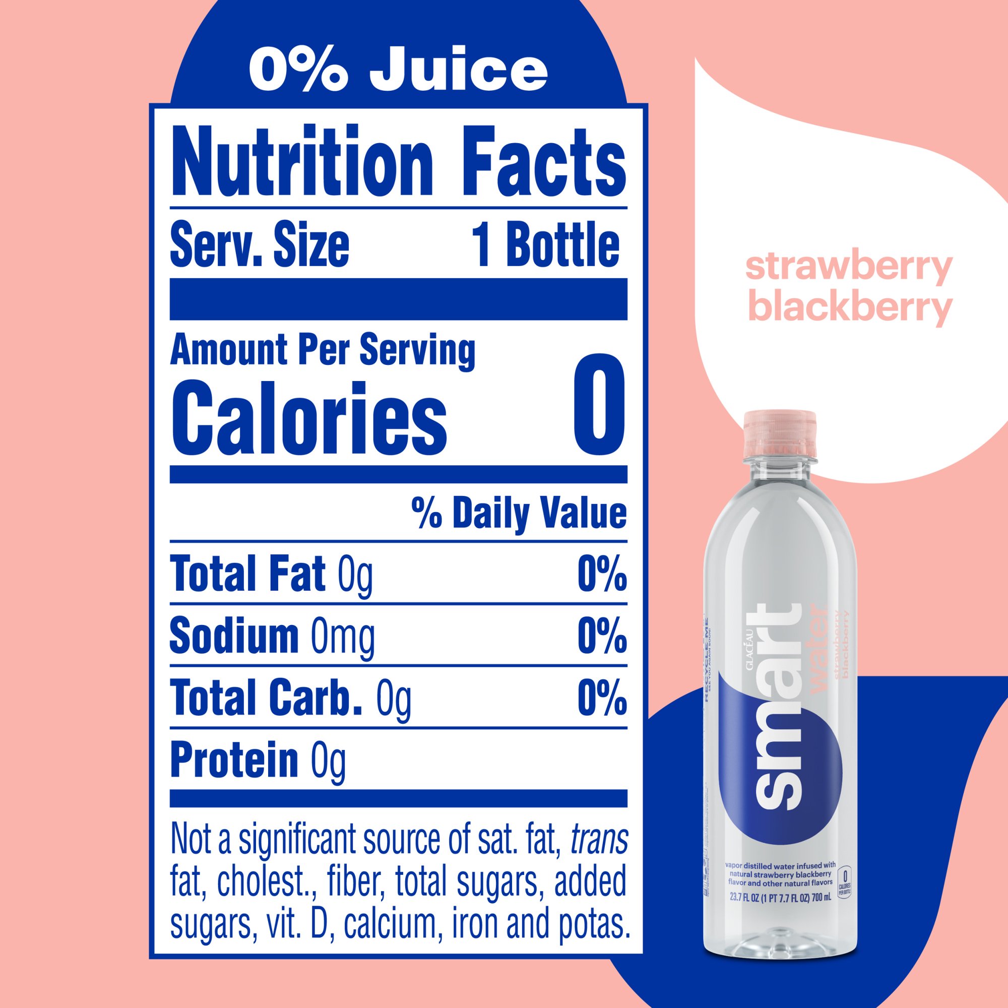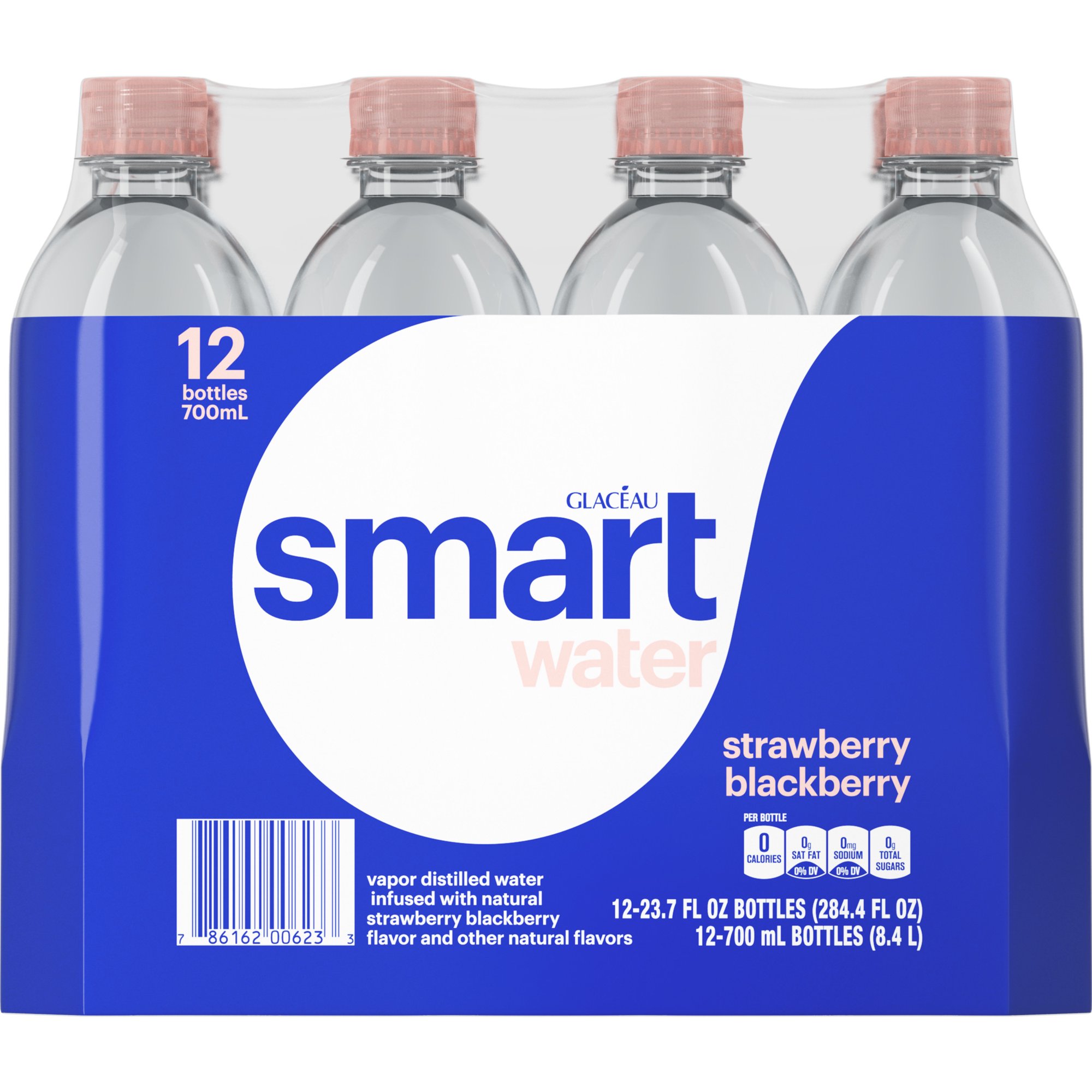 smartwater Strawberry Blackberry Vapor Distilled Premium Bottled Water 23.7 Fl Oz 12 Pack