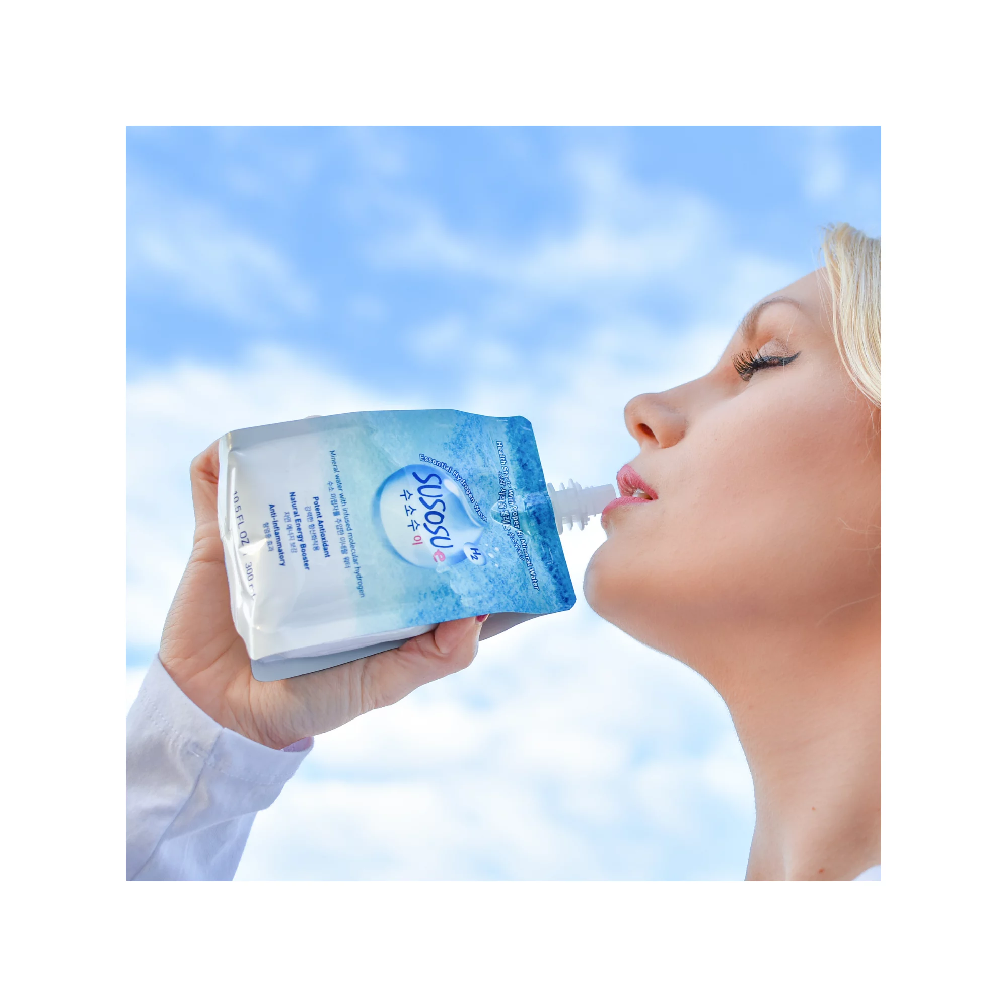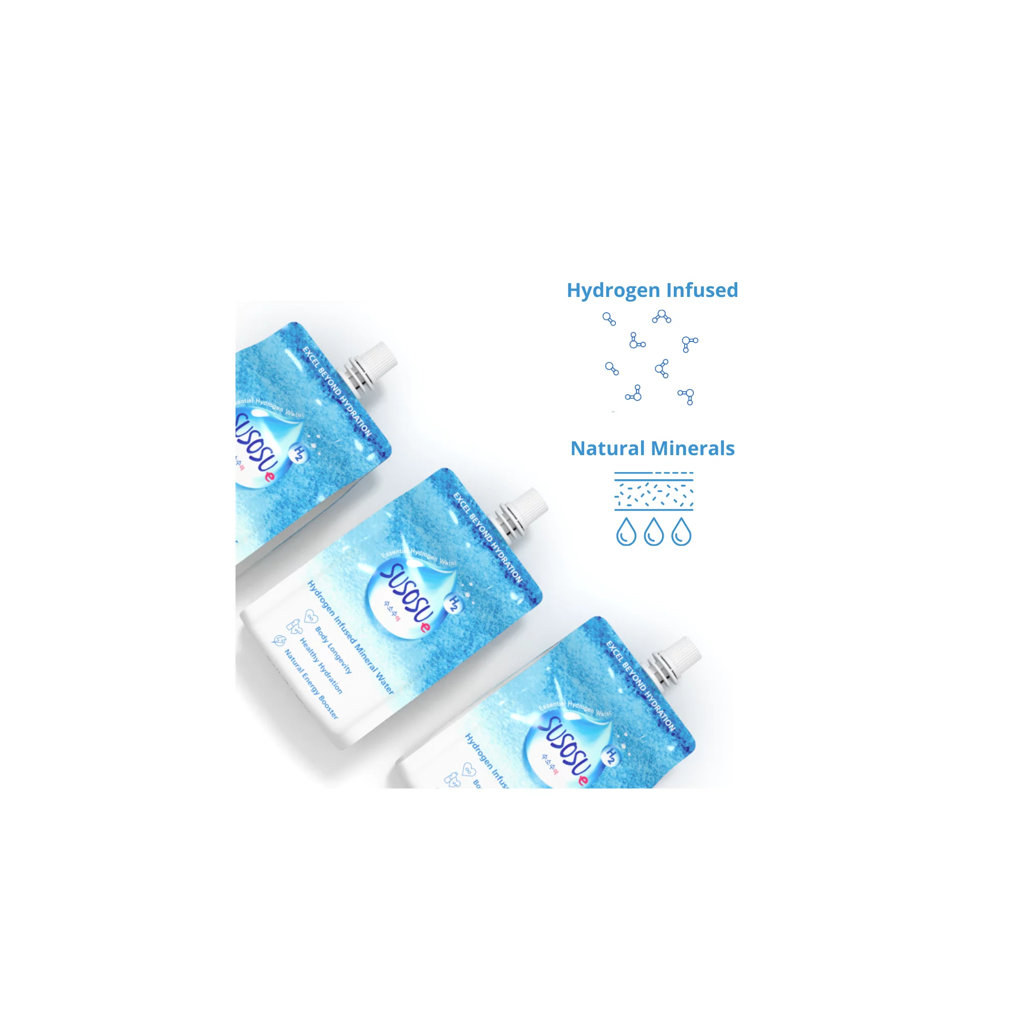 Susosu Water Hydrogen Infused Mineral Water 10.5 fl oz (Case of 10). Fully Functional Clean Mineral Water with 7.4 Balanced pH. Hydrating Hydrogen-Infused Drink with Antioxidants. BPA-Free and Eco-friendly Pouch