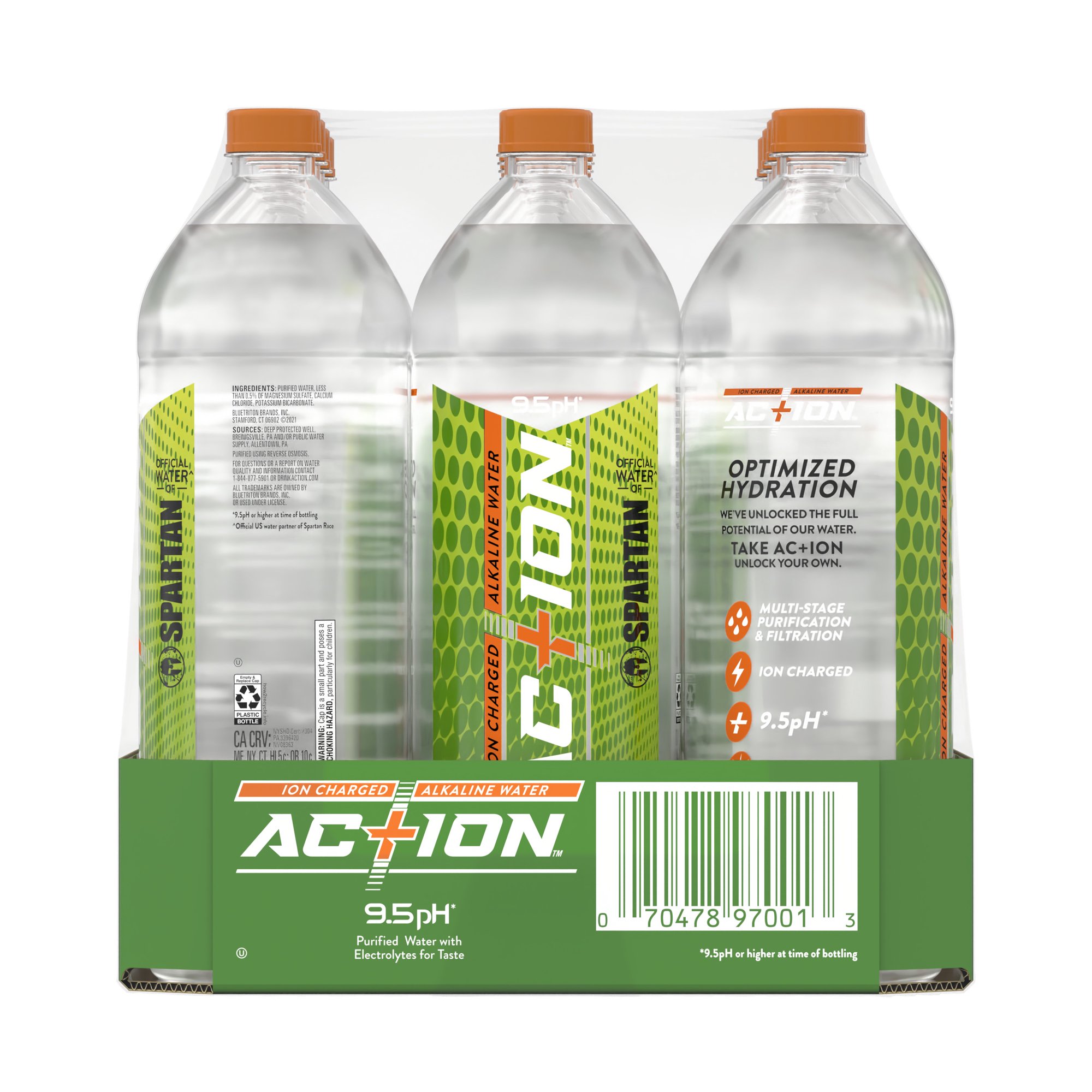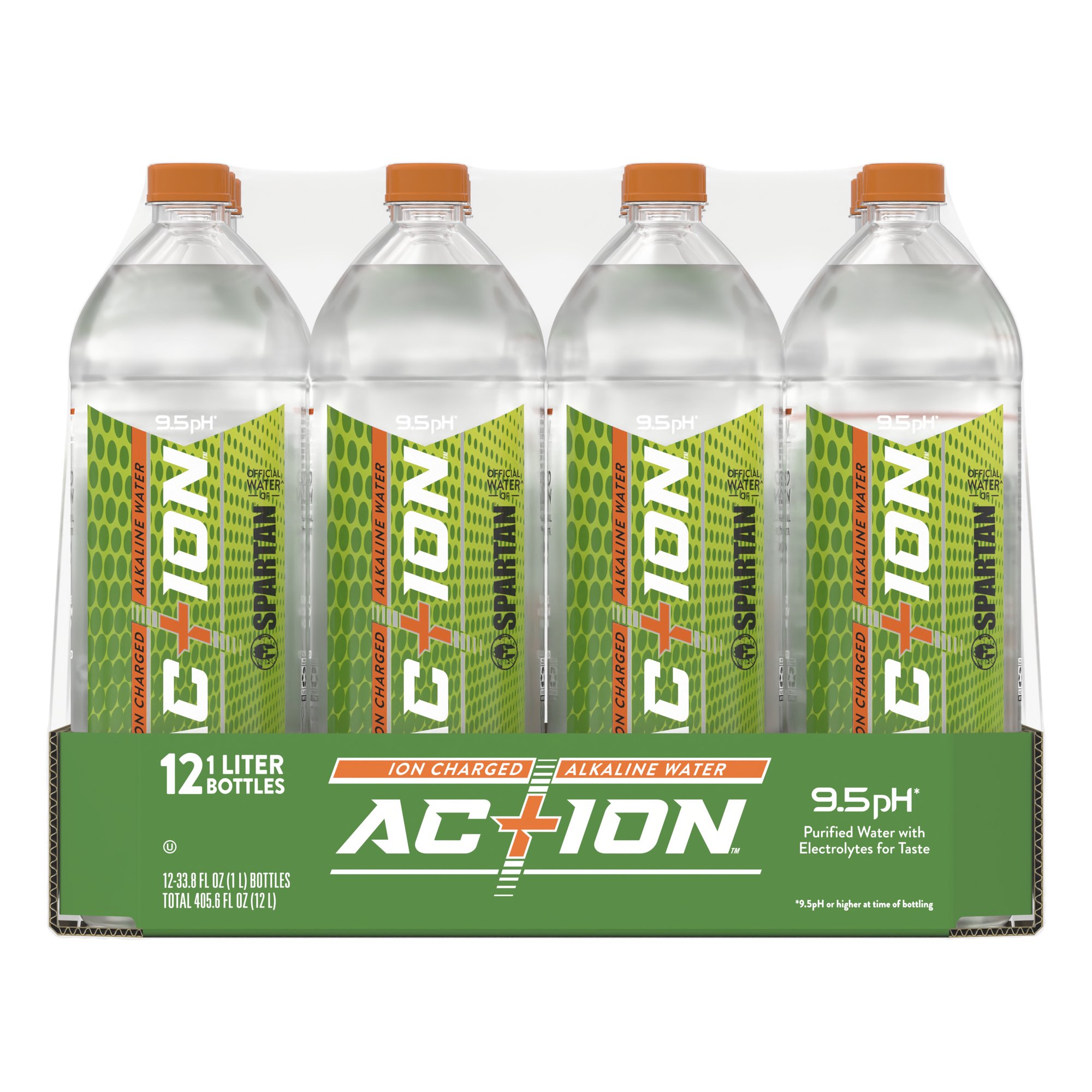 Ac+ion Ion Charged Alkaline Water 1 Liter Water Bottle 12 Pack Clear