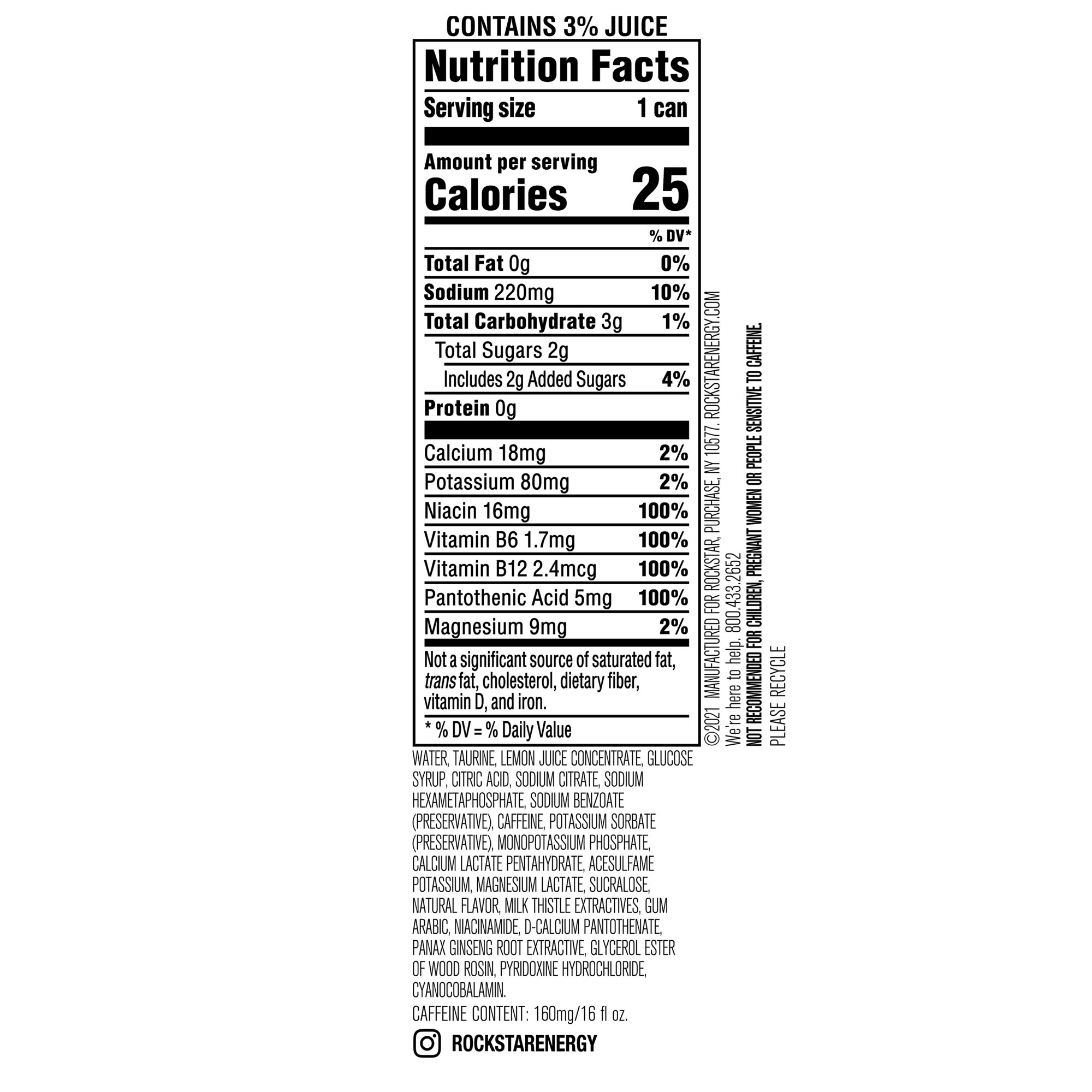 Rockstar (24 Cans) Rockstar Recovery Energy Drink. Lemonade. 16 fl oz