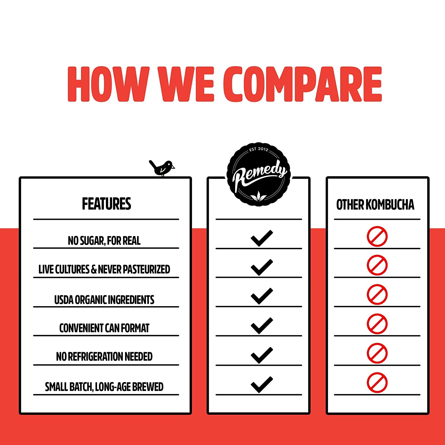 Remedy Kombucha Tea Organic Drink - Sugar Free. Keto. Vegan & Gluten Free - Sparkling Live Cultured. Long-Age Brewed Beverage - 6 Flavor Variety Pack - 8.5 Fl Oz Can. 24-Pack