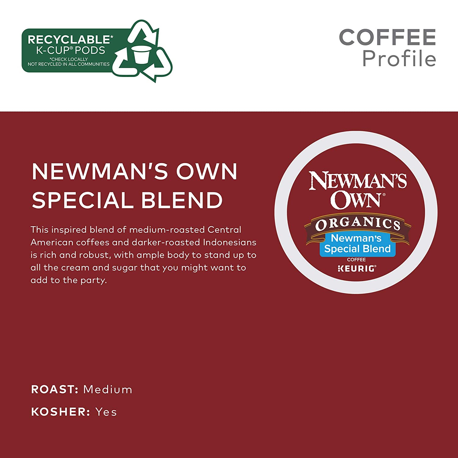 Newman-s Own Organics Special Blend Single-Serve Keurig K-Cup Pods Medium Roast Coffee 12 Count (Pack of 6)