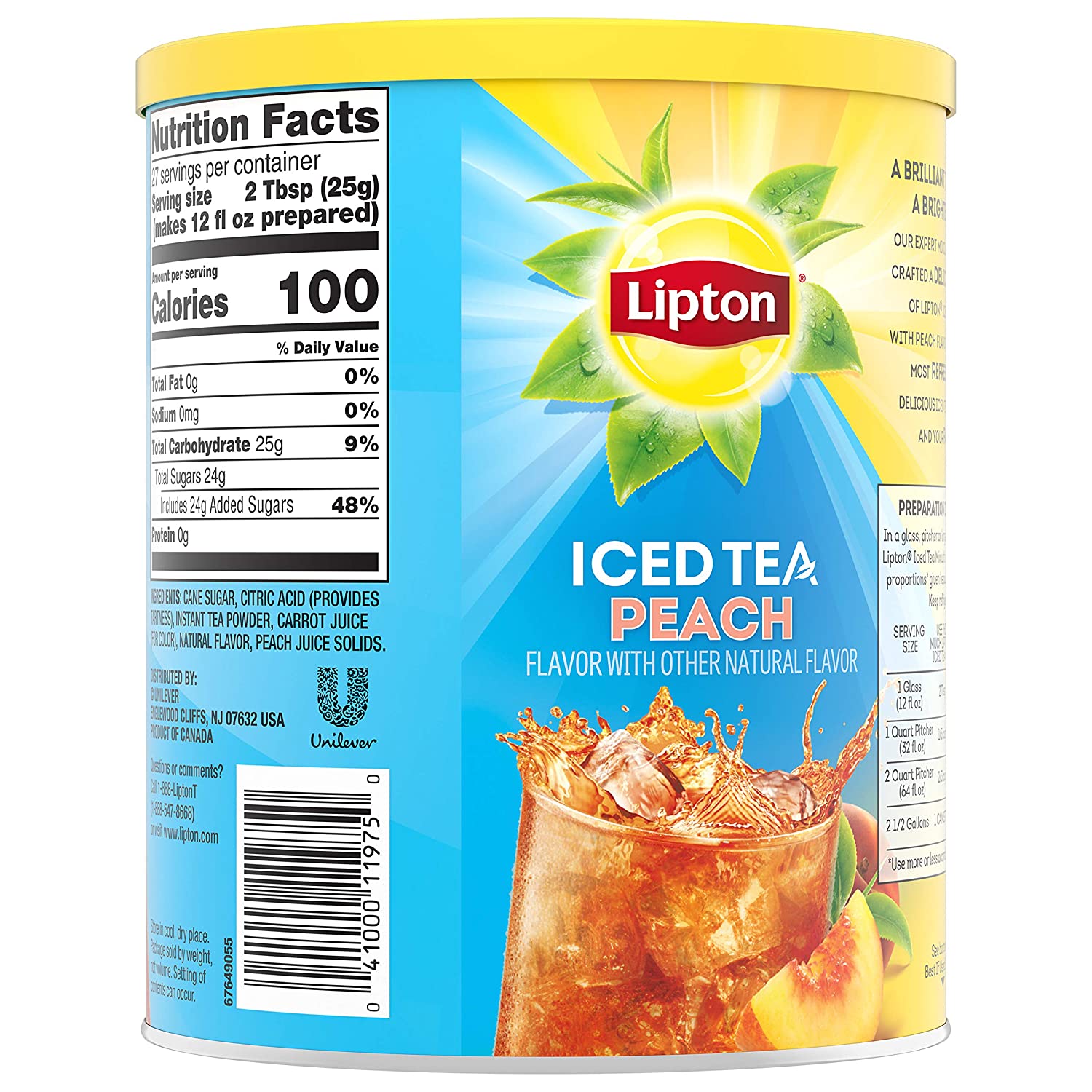 Lipton Iced Tea Mix Peach Sweetened with Real Cane Sugar. 23.6 Oz(6 Pack)