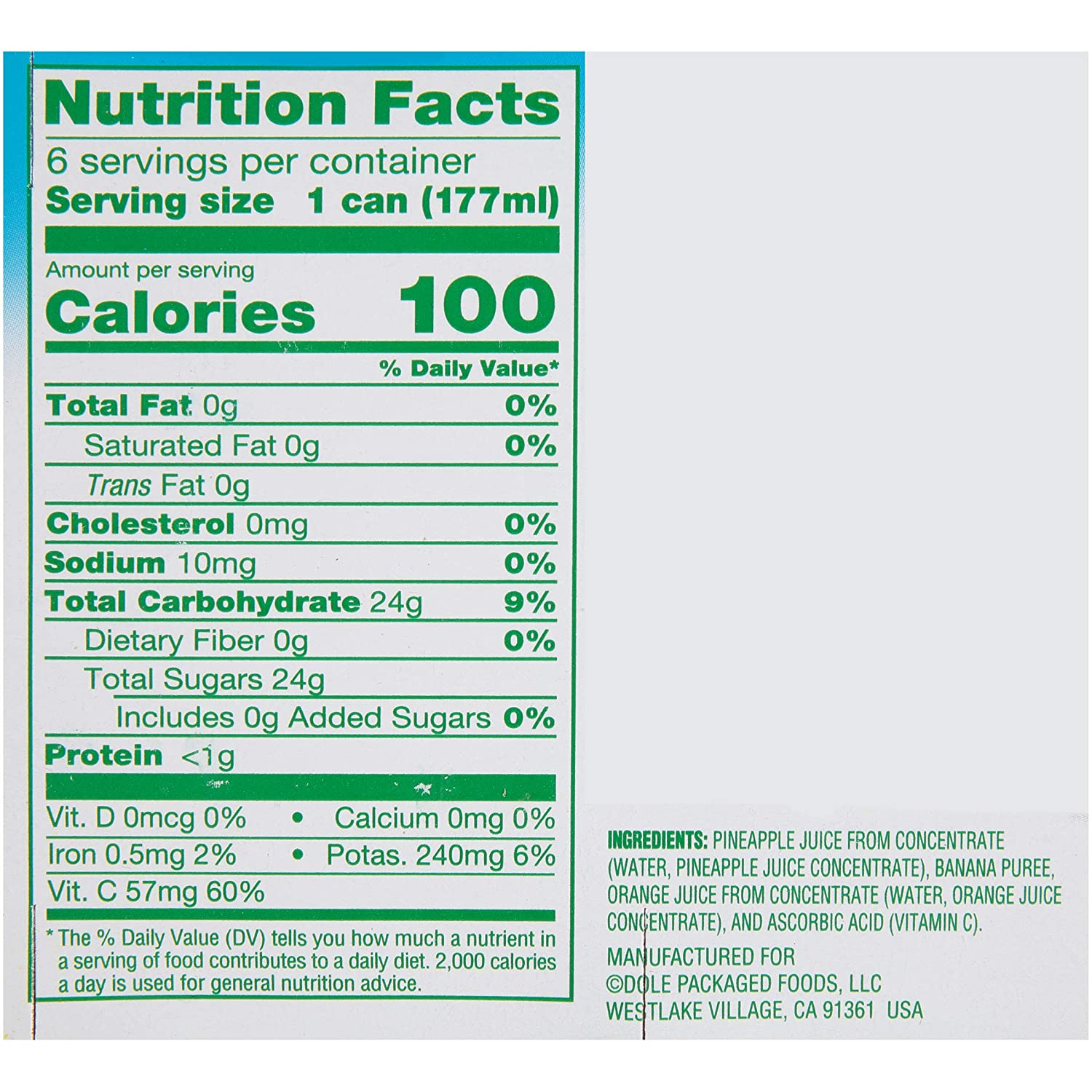 Dole Pineapple Orange Banana Juice. 100% Fruit Juice