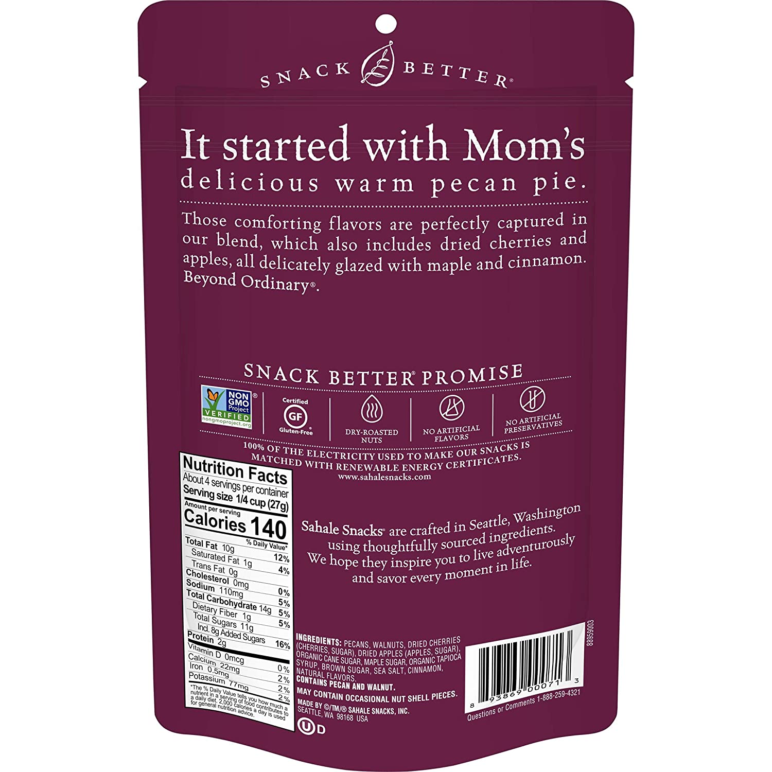 Sahale Snacks Maple Pecans Glazed Mix. 4 Ounces (Pack of 6)